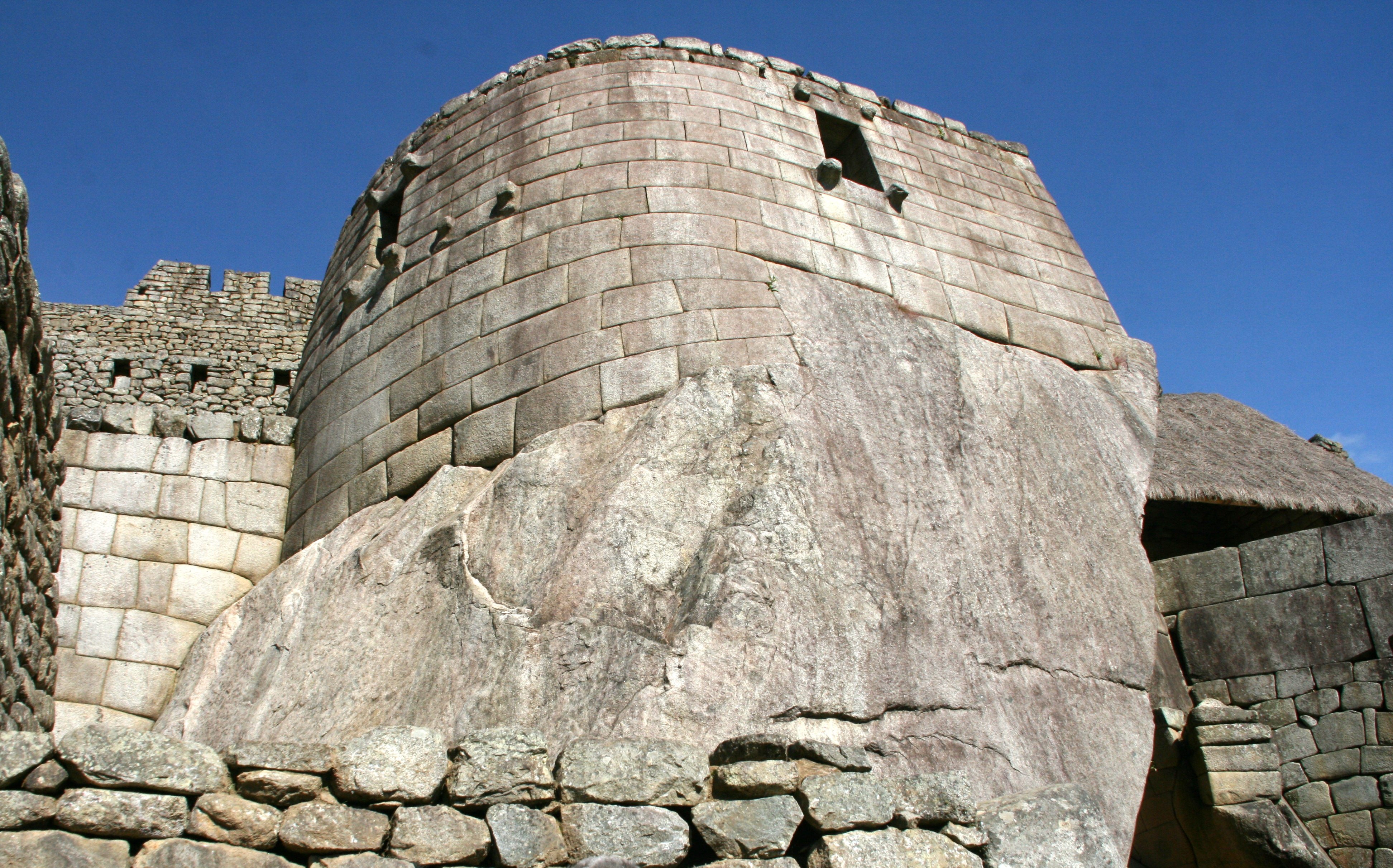 The Torreon (or Observatory) at Machu Picchu, Peru, c. 1450 CE. The tower is a rare example of curved Inca architecture. The tower, as is typical of Inca architecture, incorporates natural features into its design. Below the structure a room was carved out of a cleft in the rock and used for the worship of the sun god Inti.
