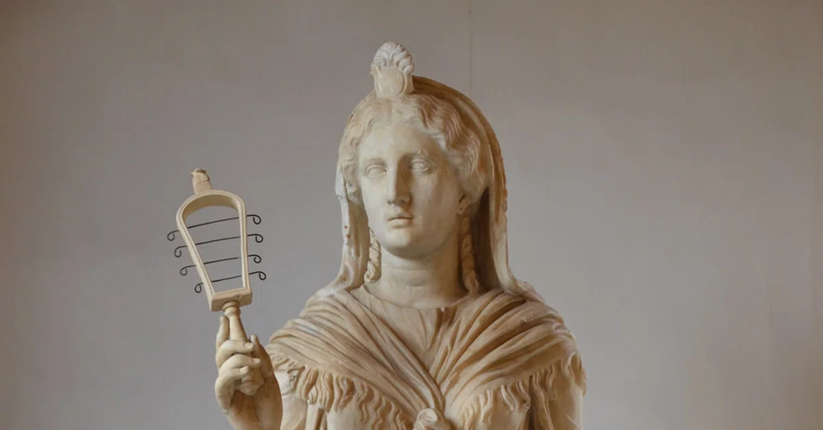 Marble statue of Isis, found at Hadrian's Villa (117-138 CE). The goddess holds a situla and sistrum, ritual implements used in her worship. (Capitoline Museums, Rome)