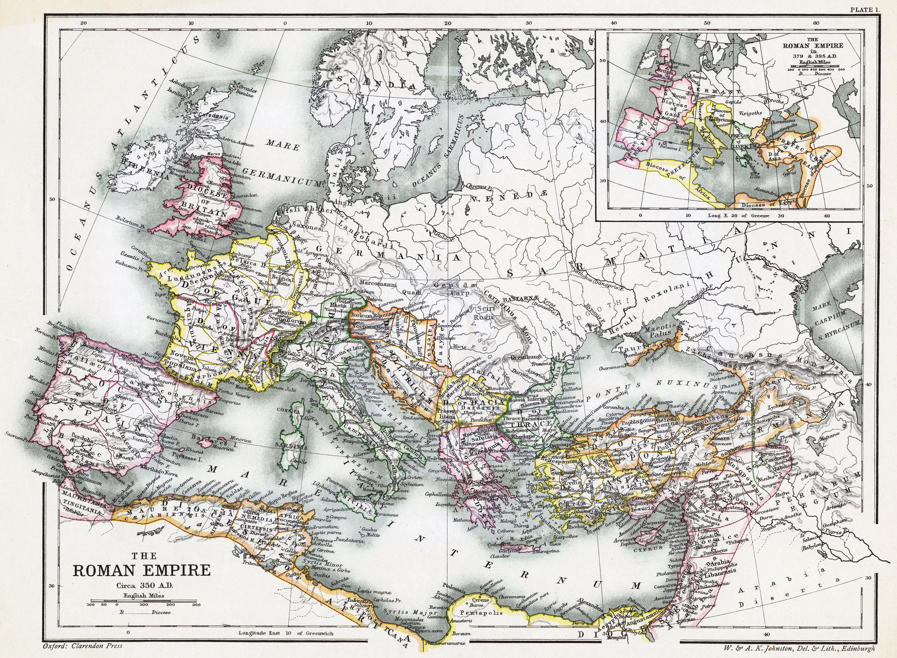 1857-1939, P. R. L. (2014, March 19). Map of the Roman Empire, 350 CE. World History Encyclopedia. https://www.worldhistory.org/image/2413/map-of-the-roman-empire-350-ce/