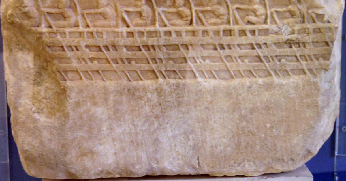 The Lenormant Relief (410-400 BCE) which is one of the very rare visual representations from ancient Greece of how the inside of a trireme appeared. (Acropolis Museum, Athens)