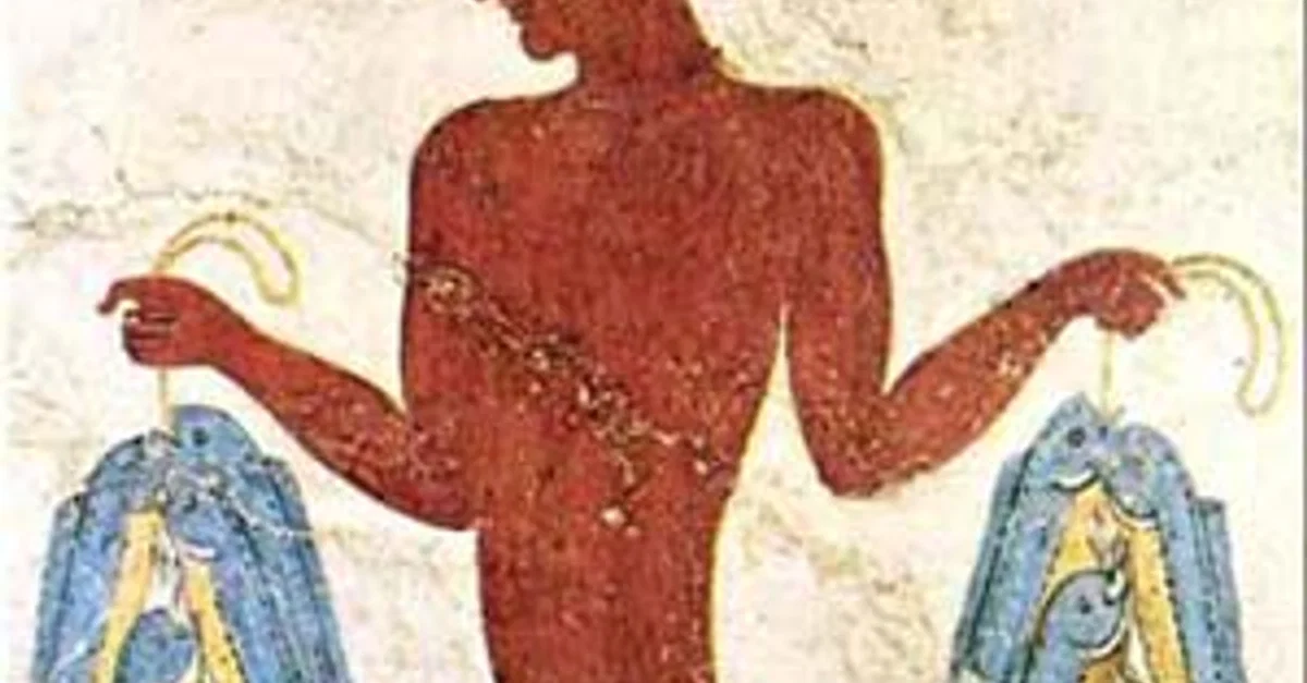 The Fisherman Fresco from Akrotiri on the Aegean island of Thera (Santorini). The male may actually be a youth offering fish as part of a religious ceremony rather than a fisherman. From Room 5 of the West House, c. 17th century BCE. (National Archaeological Museum, Athens)