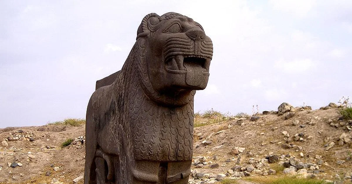 A colossal basalt lion statue from the Ain Dara Temple near Aleppo, Syria, found in 1955, dating to the 10th-8th century BCE.
