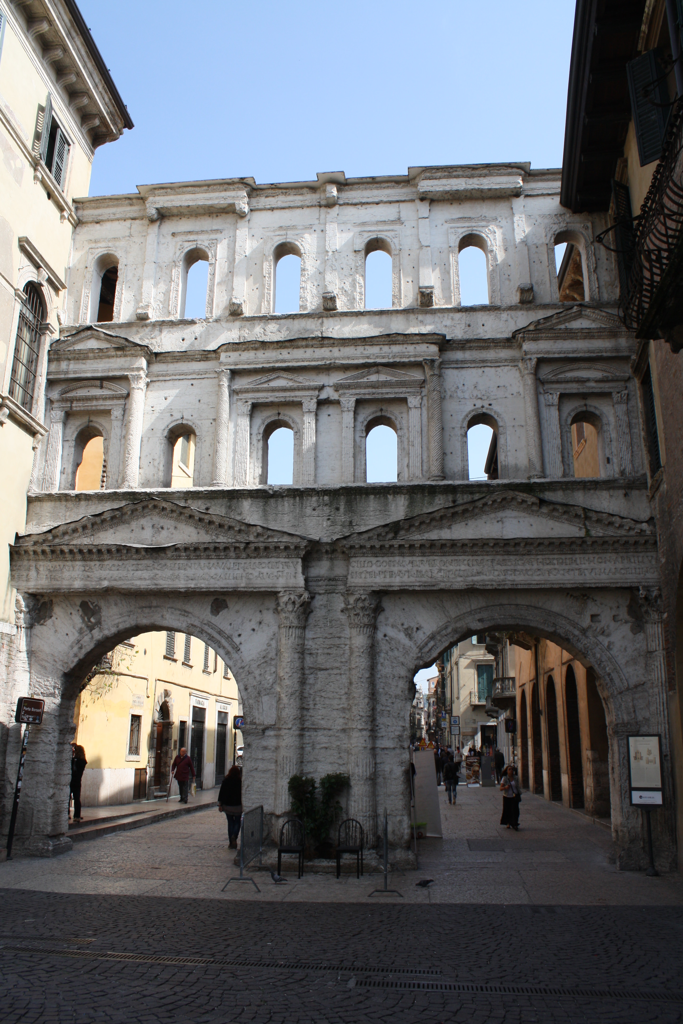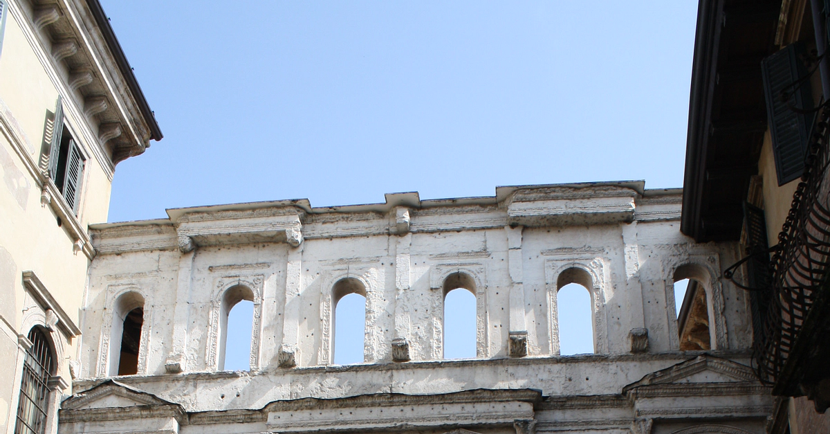 The Borsari Gate, Verona, 1st century CE. The gate is built from white Valpolicella stone and was the city's main gate in Roman times.