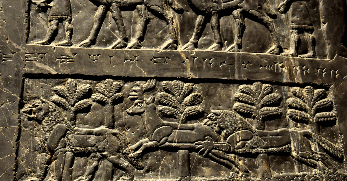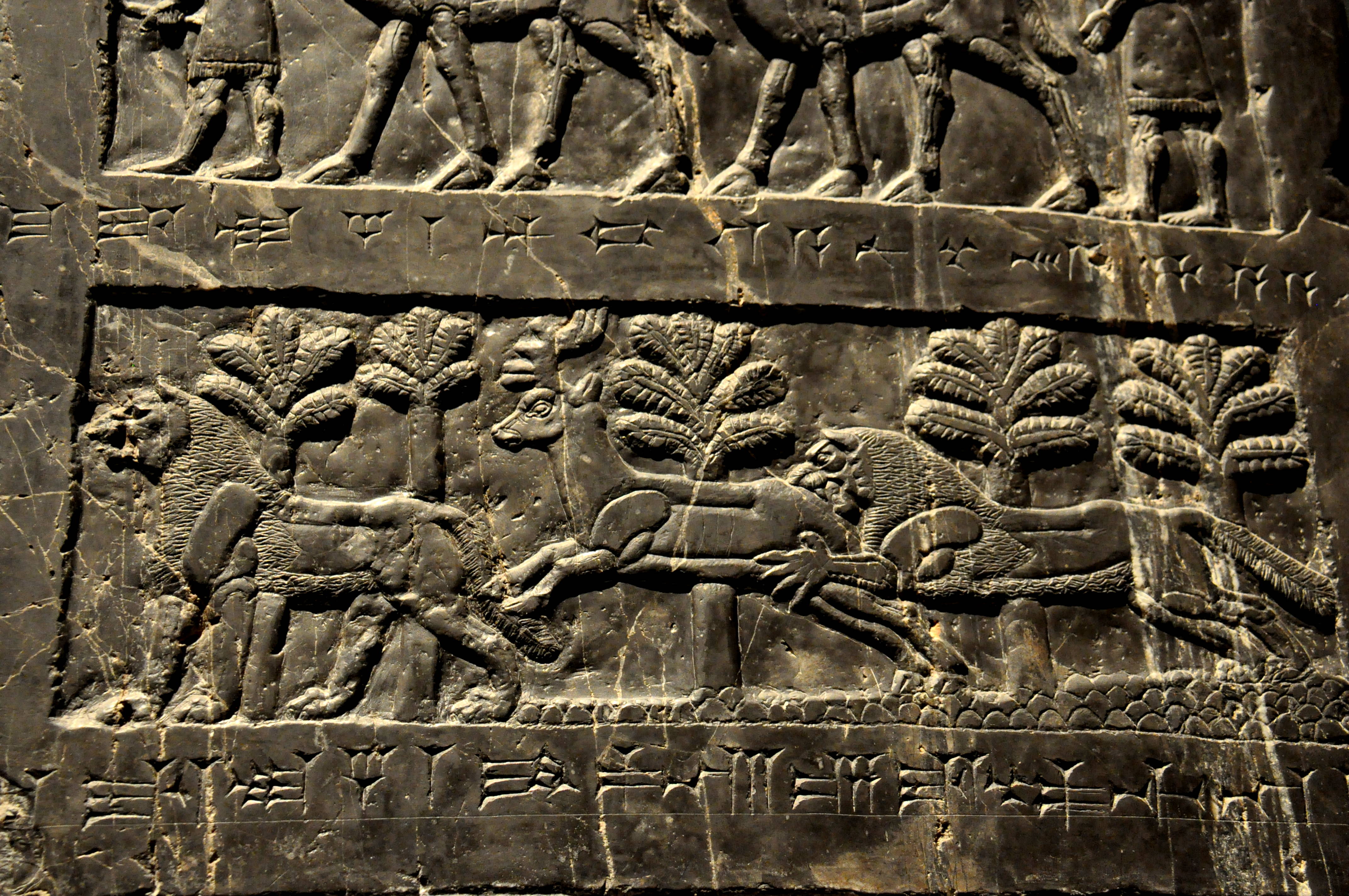 Lions and a stag from Marduk-apla-usur the Suhean, probably for the Royal hunting park. Suhi is an area on the middle Euphrates, between modern Syria and Iraq. From Nimrud, (ancient Kalhu), near the building of Shalmaneser, neo-Assyrian era, 827 BCE, Mesopotamia, northern Iraq. (The British Museum).