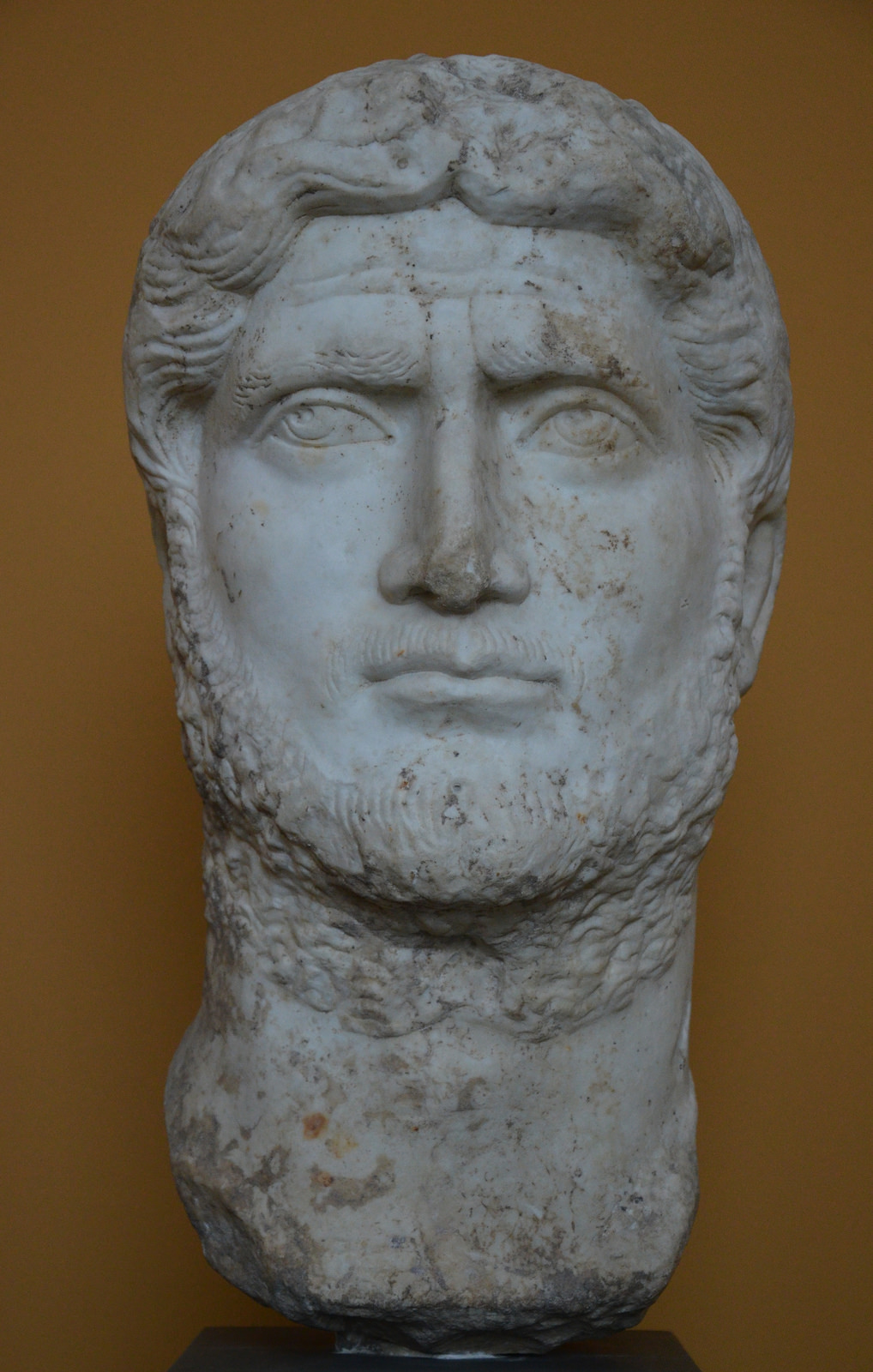 Head of Gallienus from a colossal statue, found near the Baths of Caracalla, Rome, c. 253-268 CE. (Ny Carlsberg Glyptotek, Copenhagen)