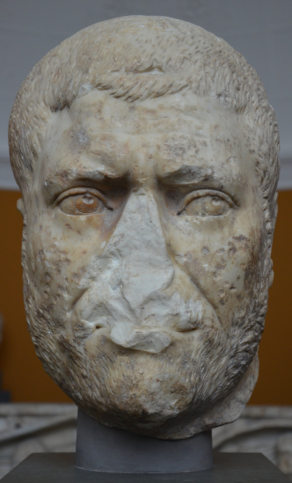 Marble head of Roman Emperor Philip the Arab, from Rome, 244-249 CE. (Ny Carlsberg Glyptotek, Copenhagen)
