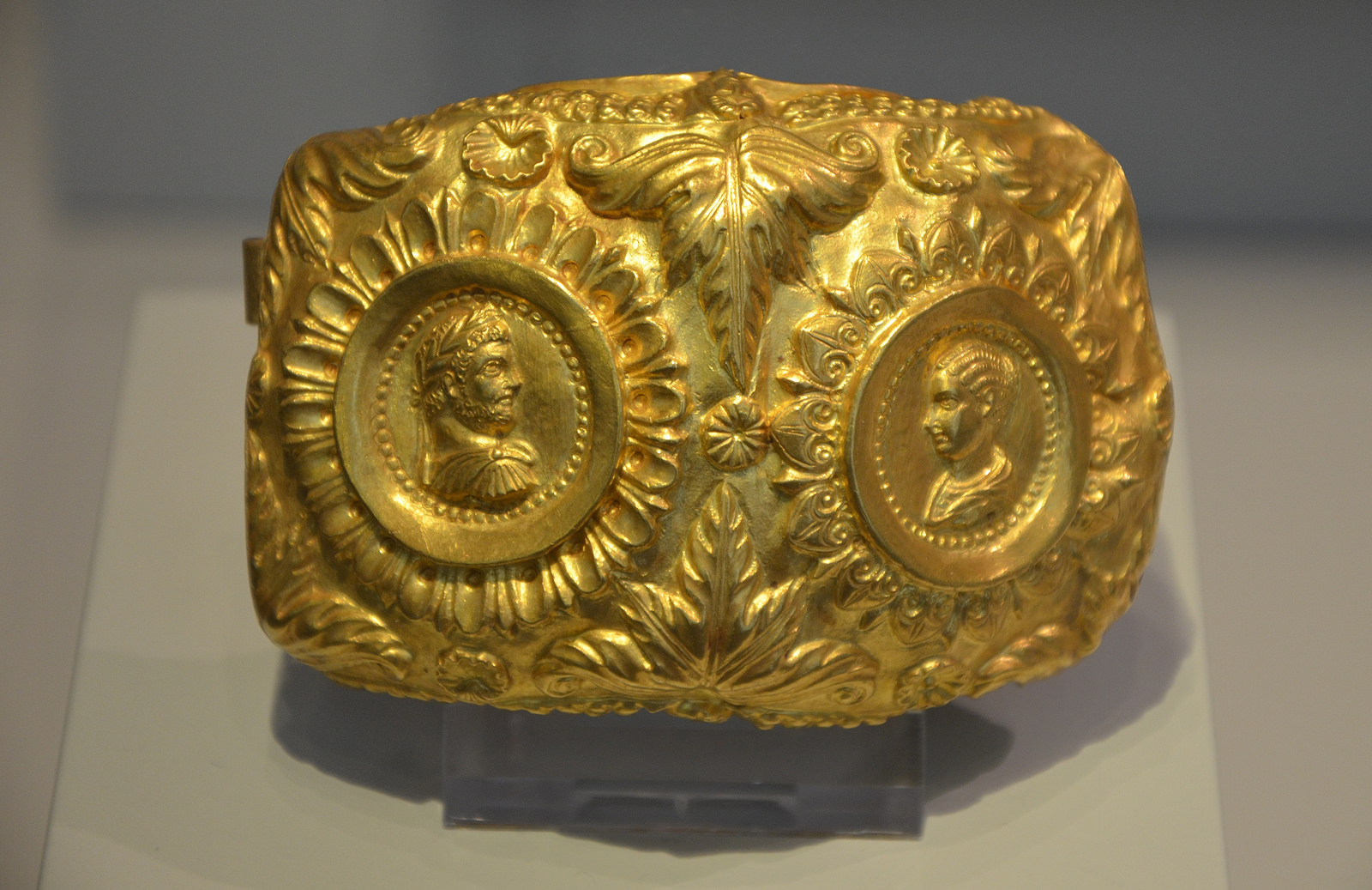 Gold armband with coins of Caracalla and his wife Plautilla, 202–205 CE. (Altes Museum, Berlin)