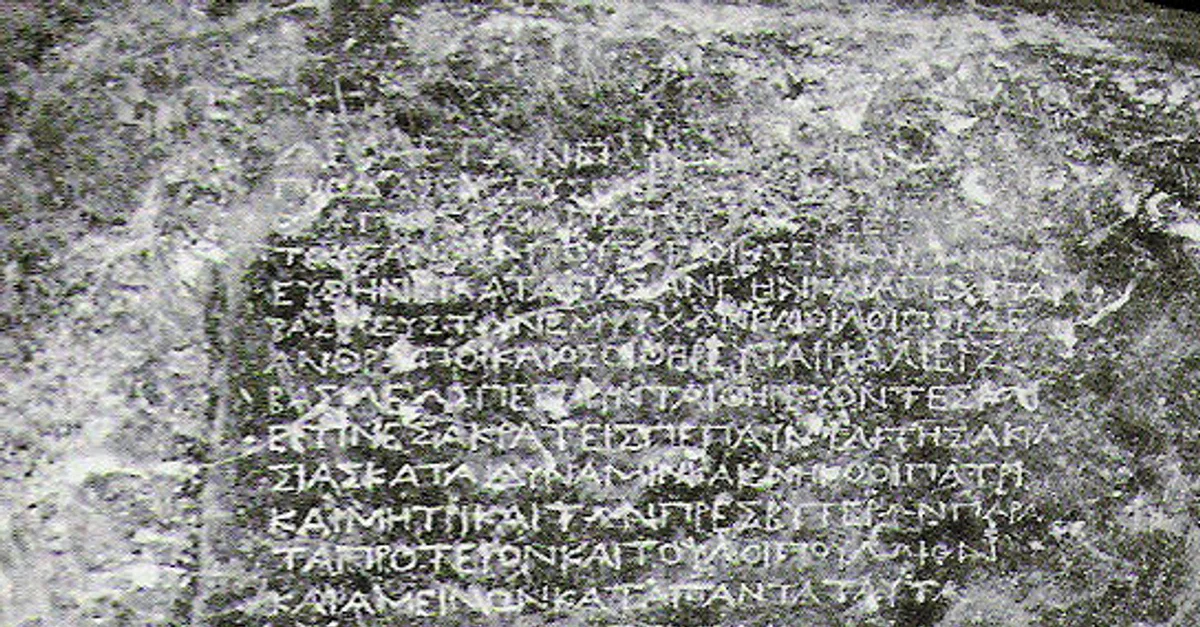 Imaging, W. (2012, April 26). Greek and Aramaic inscriptions by king Ashoka. World History Encyclopedia. https://www.worldhistory.org/image/259/greek-and-aramaic-inscriptions-by-king-ashoka/