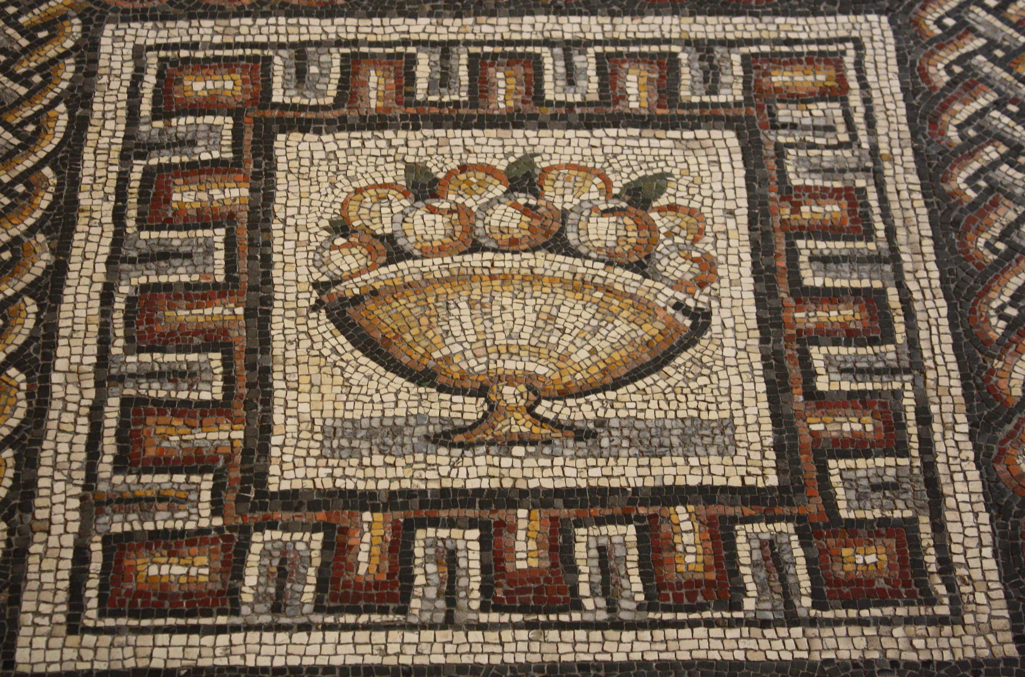 A Roman floor mosaic dating to between 350 and 375 CE and depicting fruit. Food was a popular subject in mosaics throughout the Roman period. Provenance: Toragnola, Rome. (Vatican Museums, Rome).