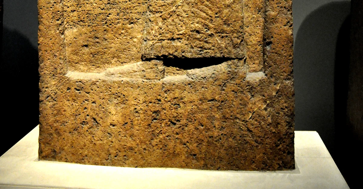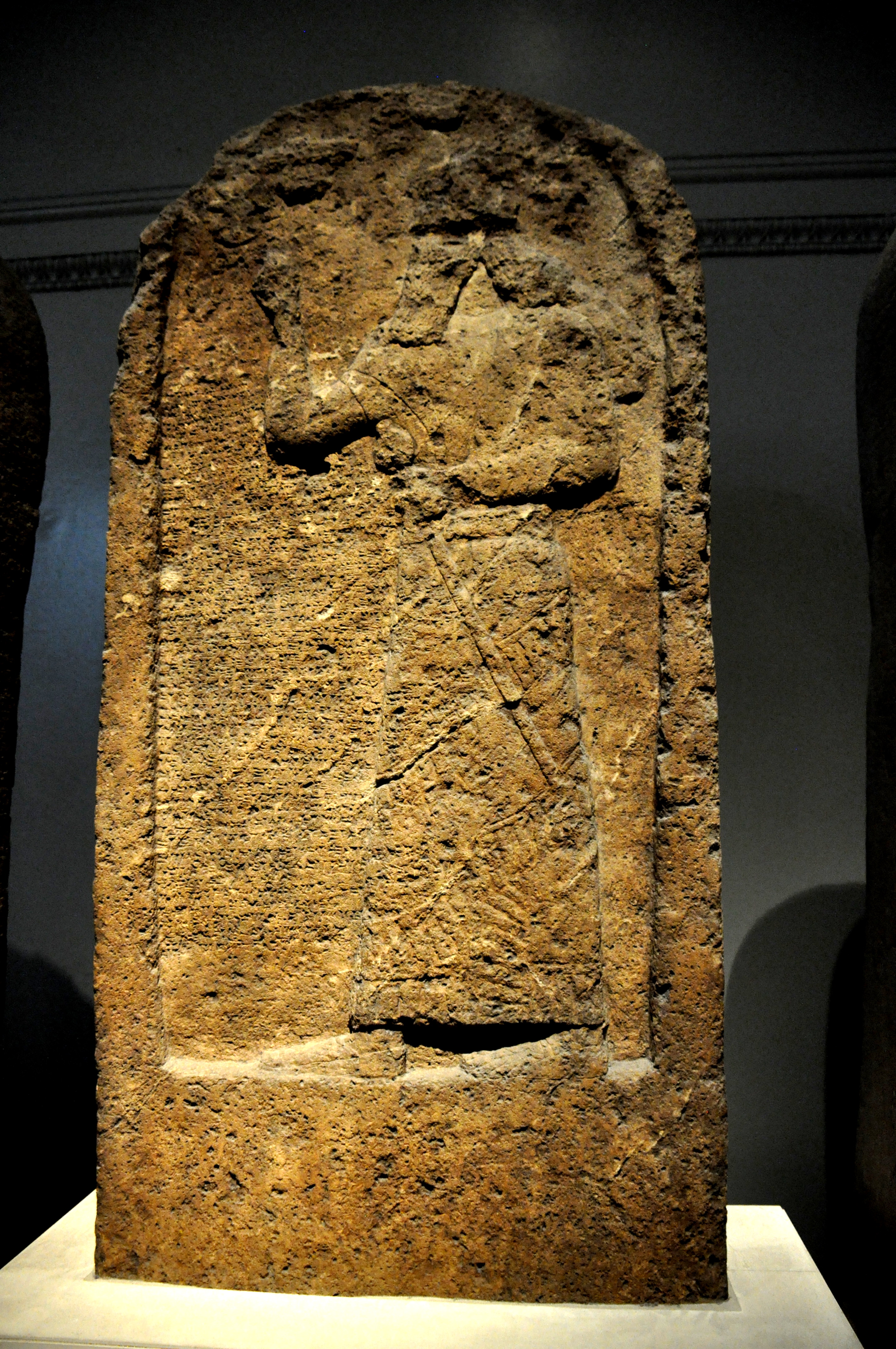 The Assyrian King Ashurnasirpal II worships in front of god symbols. The cuneiform inscription describes his military campaign in the year 879 BCE, when the Assyrian army attacked the lands of the upper Tigris River, near Diyarbakir (modern southern Turkey). This stela was probably set up soon afterwards in one of the main cities under the Assyrian rule. Neo-Assyrian era, 879 BCE, from Kurkh, near Diyarbakir. (British Museum, London)