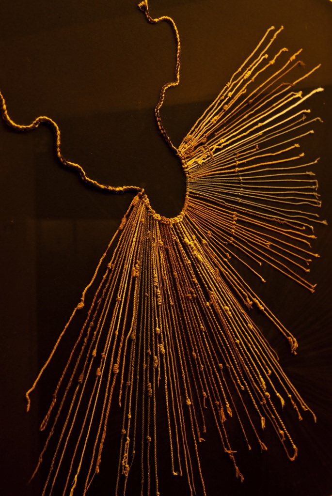 Khipu (quipu) or record-knots were used by ancient Andean cultures such as the Inca in order to record and transfer information and records. (Museum of Colchagua, Santa Cruz, Chile)