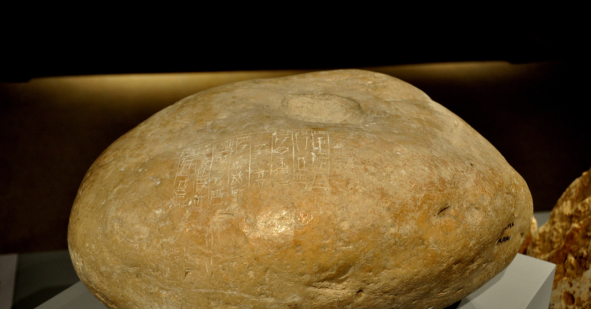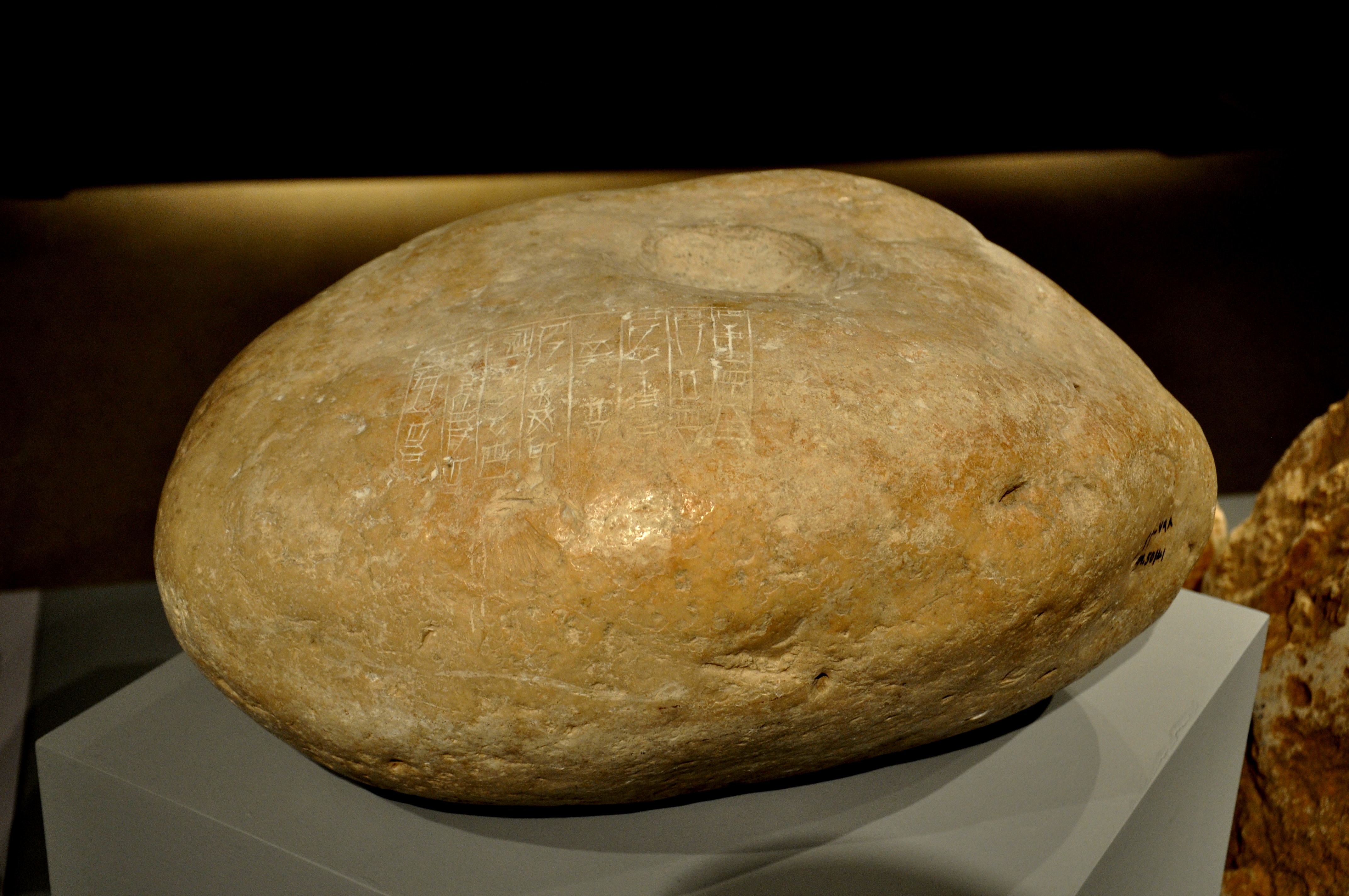 The cuneiform inscriptions on this door socket mention the name of the Kassite king Kurikalzu. Kassite era, 1595-1157 BCE. From Dur-Kurikalzu (modern Agarguf, southwest of Baghdad). (The Sulaimaniya Museum, Iraq). (A door socket is the stone that the door revolves on to open and close. The part of the door where the hinges are now was a log, the end of which turned in this stone.)