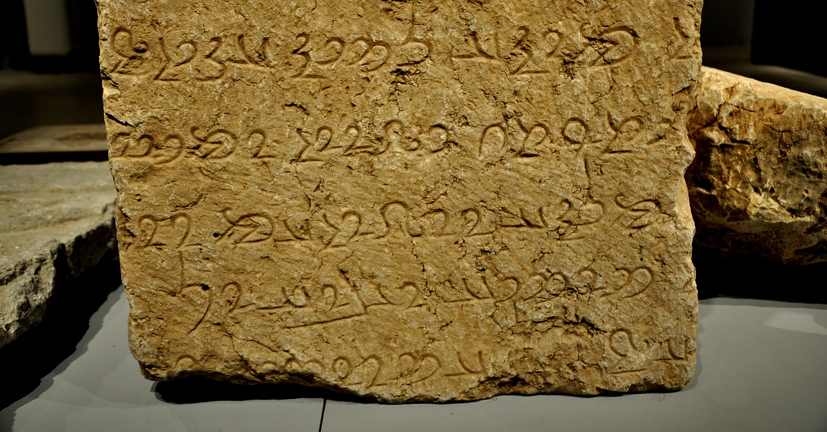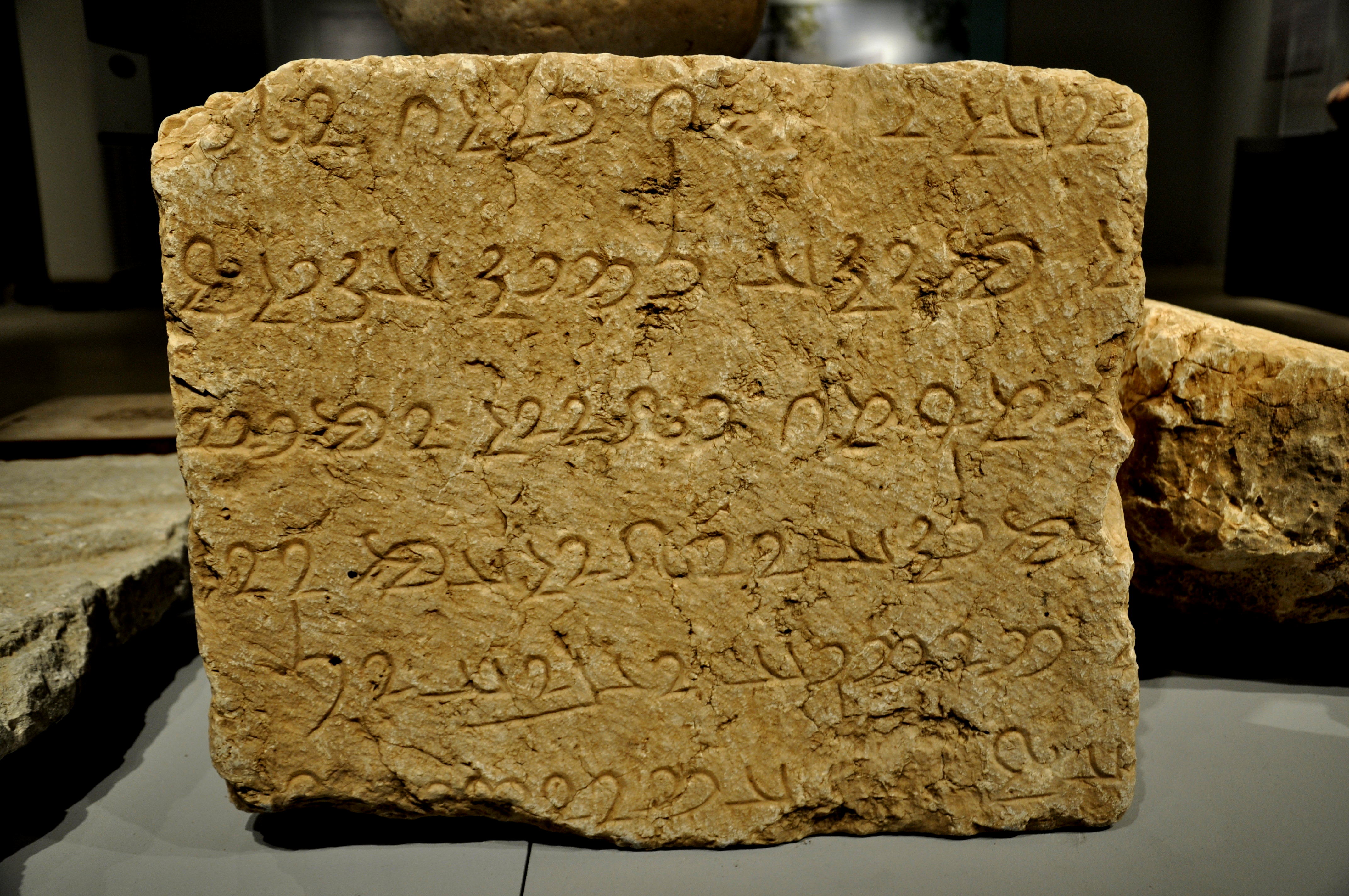 The inscriptions on this stone mention the name of the Sassanian king Narseh and they were written in middle Persian and Parthian languages. Sassanid period, around 300 CE. From Paikuli tower, modern Sulaimaniya Governorate, Iraq. (The Sulaimaniya Museum, Iraq).