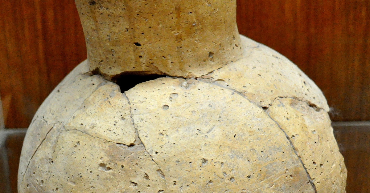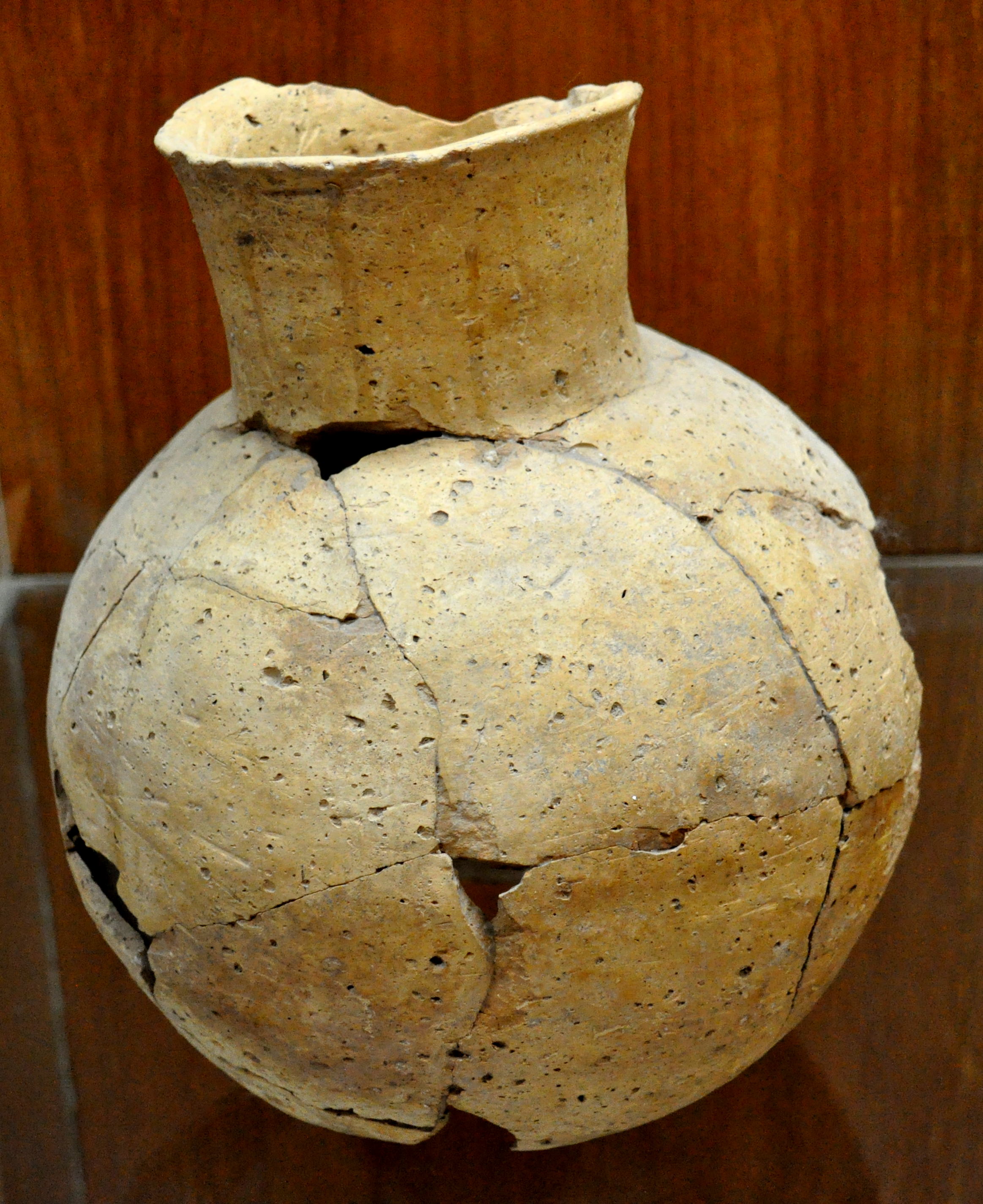 This ball-body jar was found in the Faida district of the modern city of Musil, Ninawa Governorate, Iraq. It dates back to the Hassuna period, 6th millennium BCE. (The Sulaimaniya Museum, Iraq).