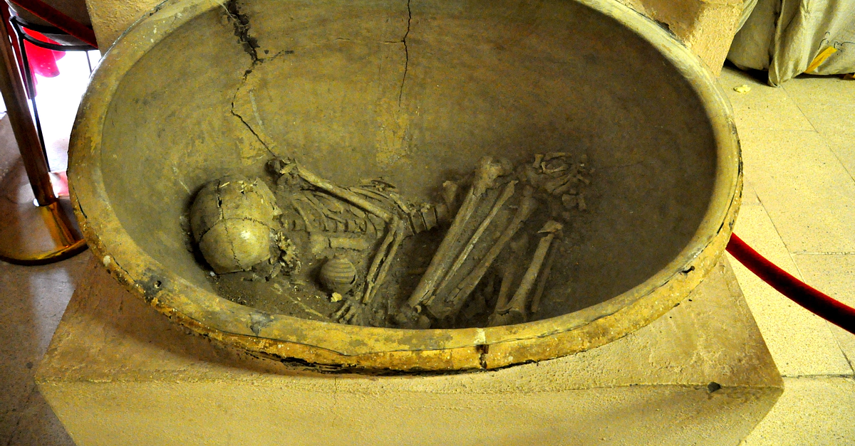 This pottery coffin contains a woman's skeleton inside it, and it was found in Faida district, near modern Dukok city, Iraq. 1st millennium BCE. (The Sulaimaniya Museum, Iraq).
