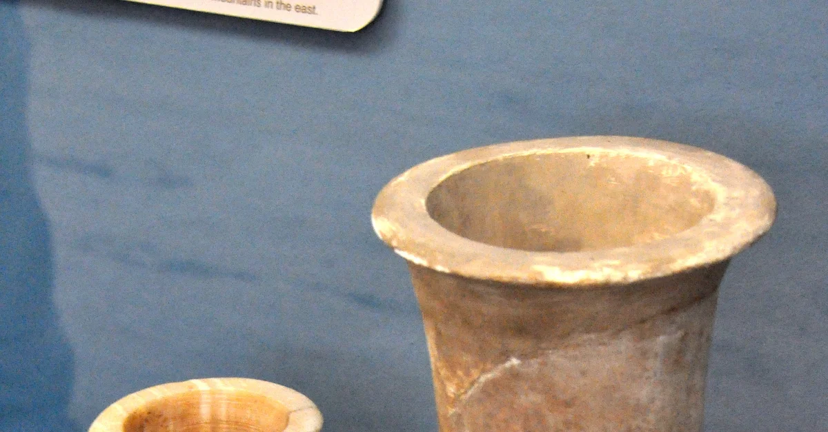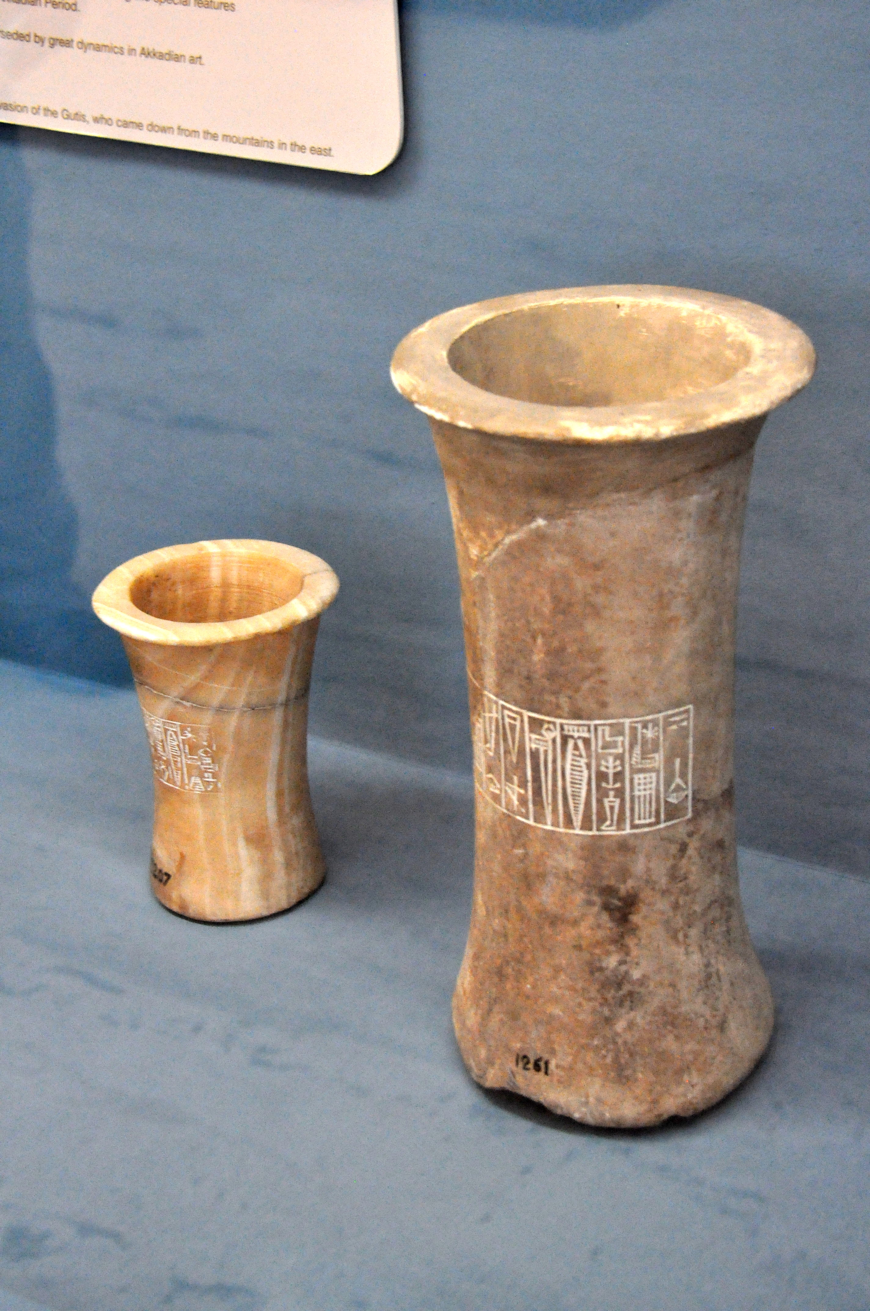 These two marble vases were inscribed with the name of Naram-Sin, king of Sumer and Akkad. Reign of Naram-Sin, 2254-2218 BCE. From Mesopotamia, Iraq. (Istanbul Archeological Museums/Ancient Orient Museum, Istanbul, Turkey).