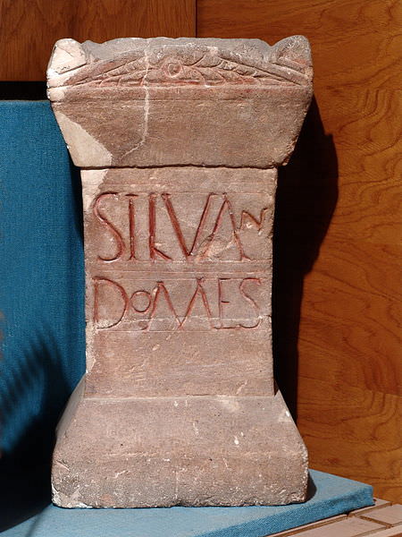 This is an altar with a votive inscription in Latin from the city of Cluj-Napoca, which is in present-day Romania (Roman Dacia). The altar dates to c. 101-150 CE. height: 45 cm width: 24 cm depth: 19.5 cm letter size: 6-2 cm Transcription: Silvan(o)/Domes(tico) Majuscule: SILVAN DOMES