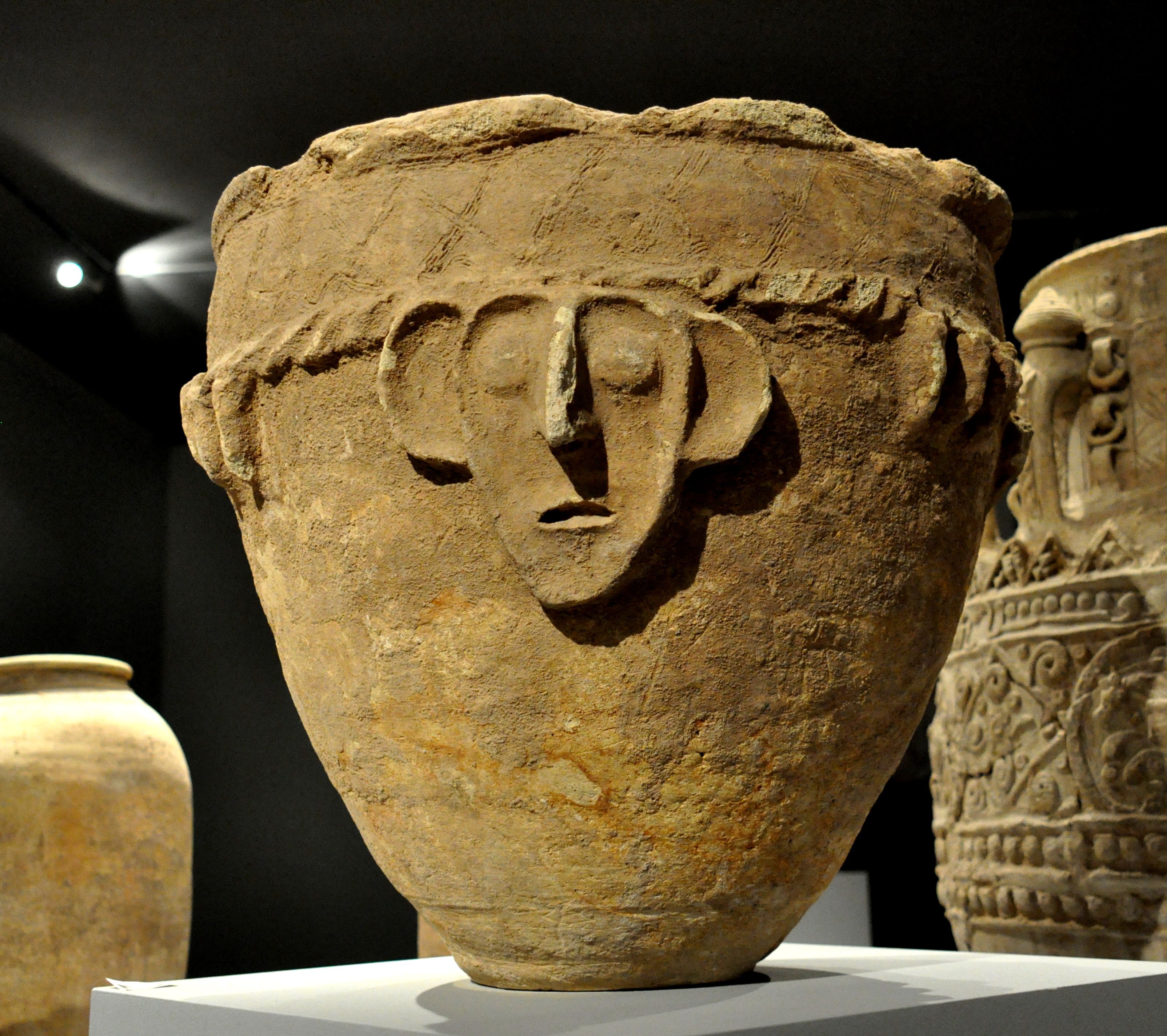 This large pottery basin was decorated with a human face and dates back to the Akkadian period, 2350-2156 BCE, Mesopotamia, Iraq. (The Sulaimaniya Museum, Iraq).