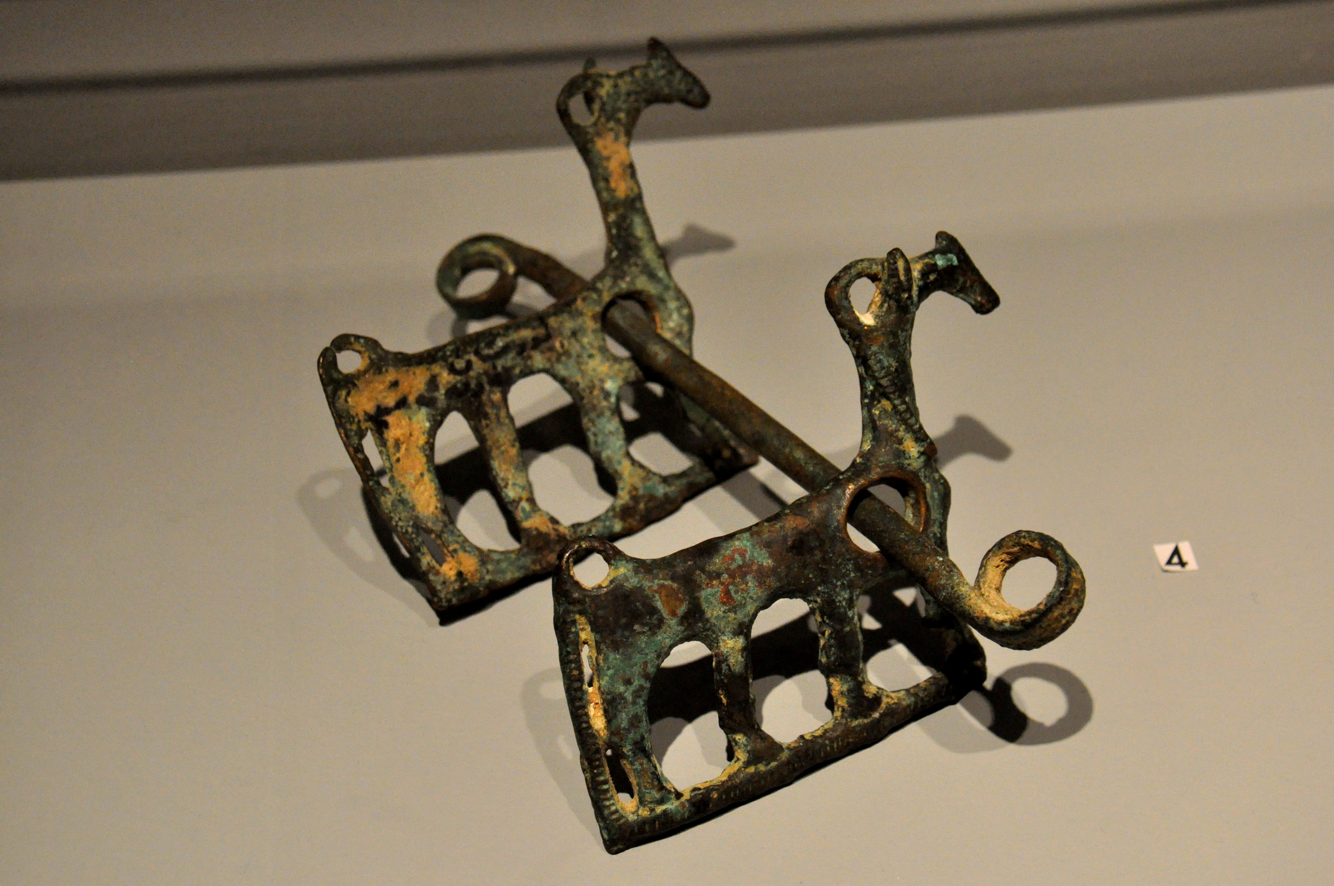 A horse bit with cheek pieces in the form of horses. From Lorestan, modern western Iran. Sassanid period, 224-651 CE. (The Sulaimaniya Museum, Iraq).