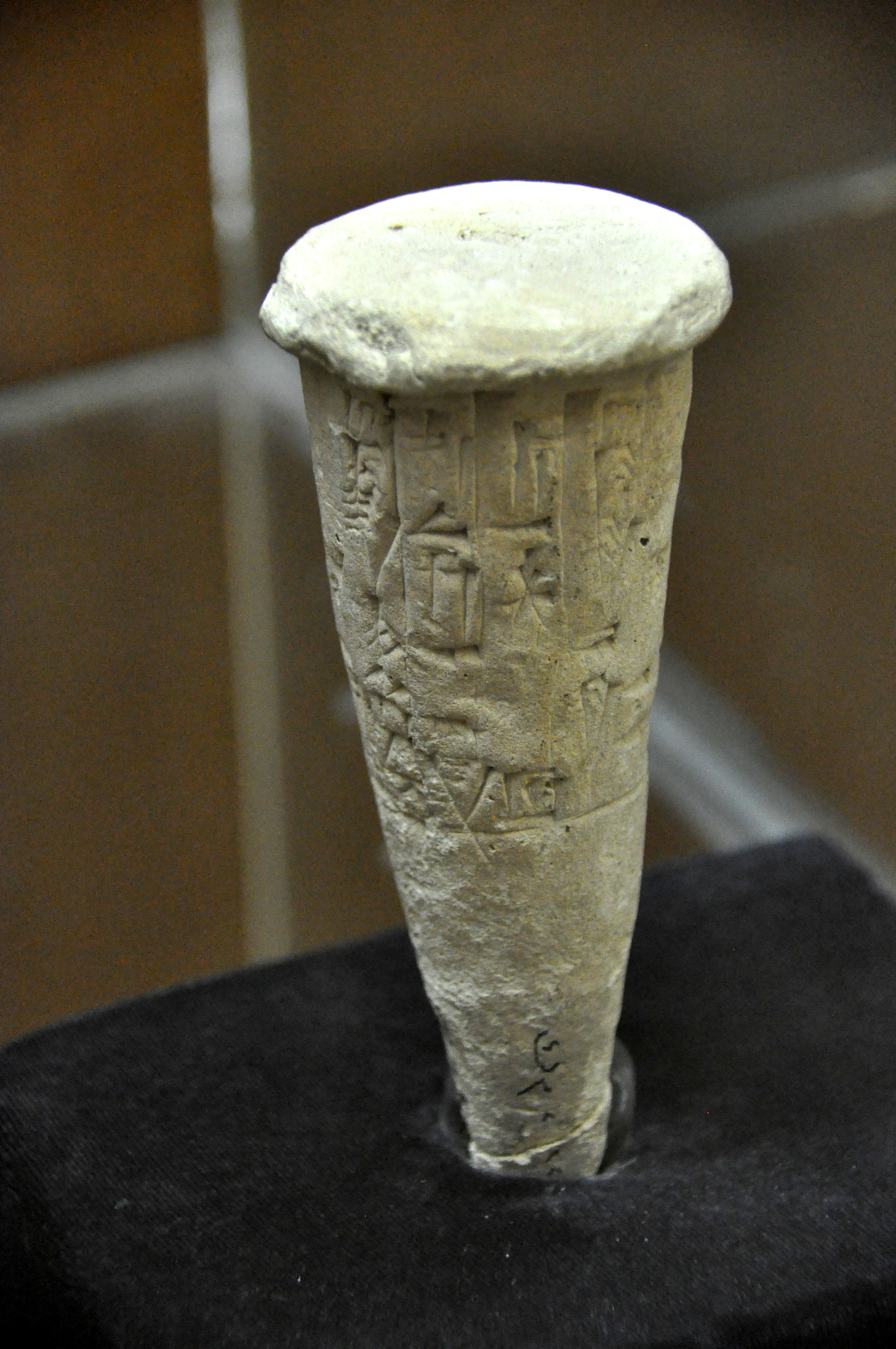 This foundation cone records the building of one of Nanna's temples at Ur. Neo-Sumerian period, Ur III, reign of Ur-Nammu, 2047-2030 BCE, Mesopotamia, Iraq. (The Sulaimaniya Museum, Iraq).