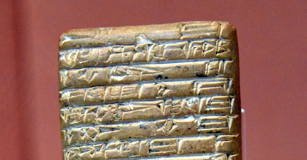 The cuneiform inscriptions (in the old Akkadian language) on this clay tablet mention "Gutians" as invaders of the Akkadian Empire. The tablet was donated to the British Museum by Dr. N. Corkill in 1930 CE. The site and date of excavation are unknown. Akkadian period, 2250 BCE. From Mesopotamian, Iraq. (The British Museum, London).