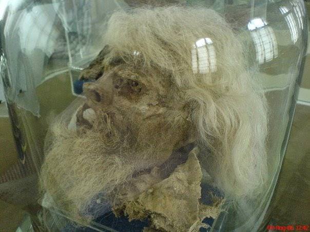 The original Saltman, the first of six well-preserved bodies found in a salt mine near Zanjan, Iran. This man lived c. 1750 years ago, and his mummy was discovered by miners in 1994.