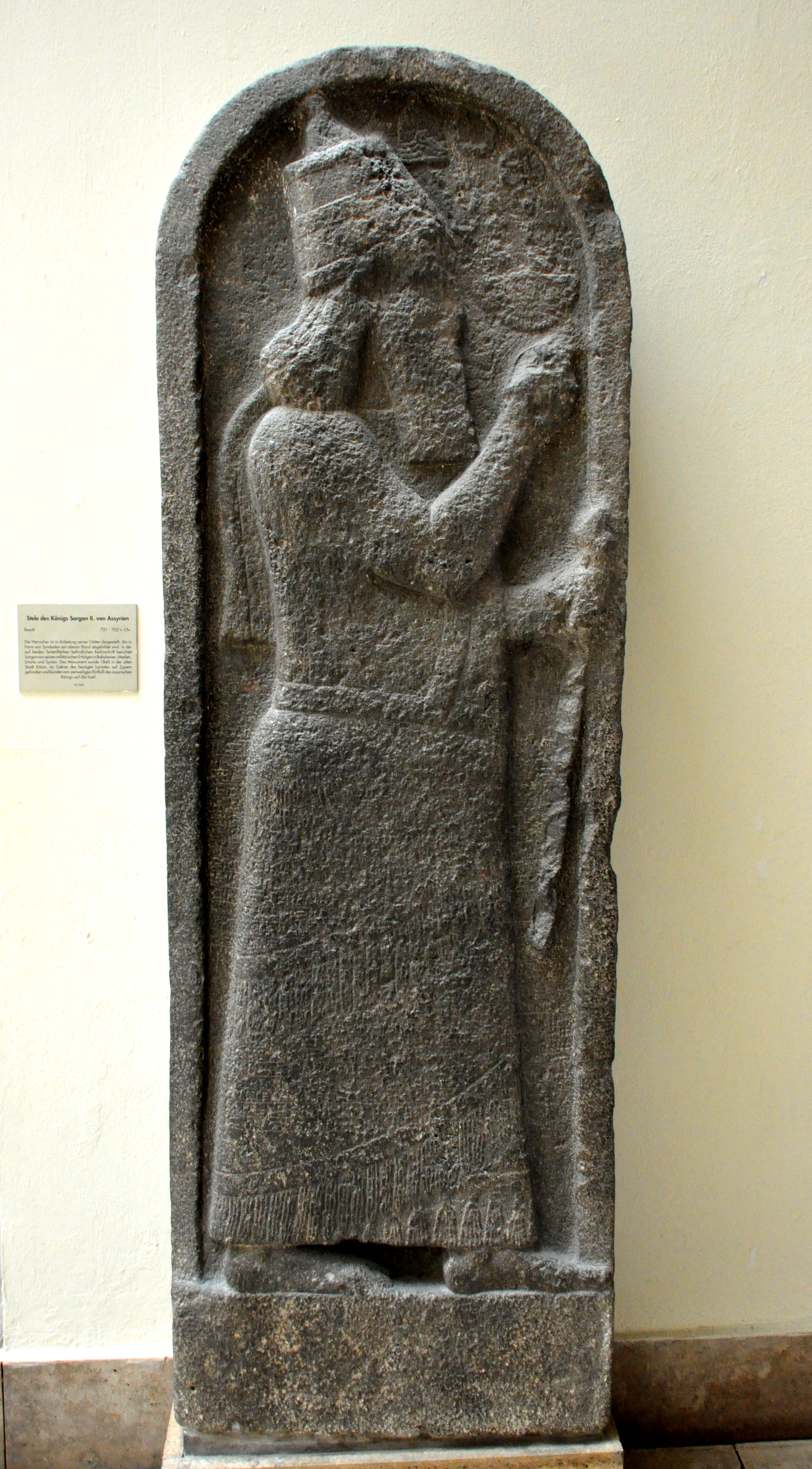 Basalt stele of Sargon II (721-705 BCE), found in Bamboula, Kition (modern Laranca, Cyprus) in 1845.