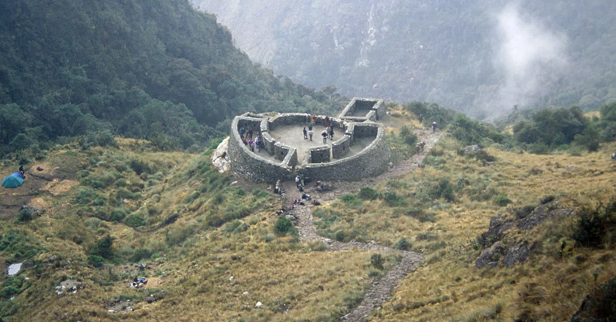 An Inca rest station on the Inca Trail, Peru. Such stations were built at regular intervals along most major Inca highways.