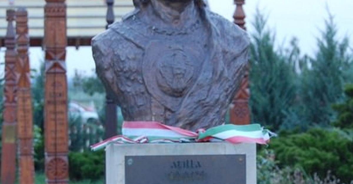 Bust of Attila the Hun, Attila's Hill, Kincsem Lovaspark, Hungary.