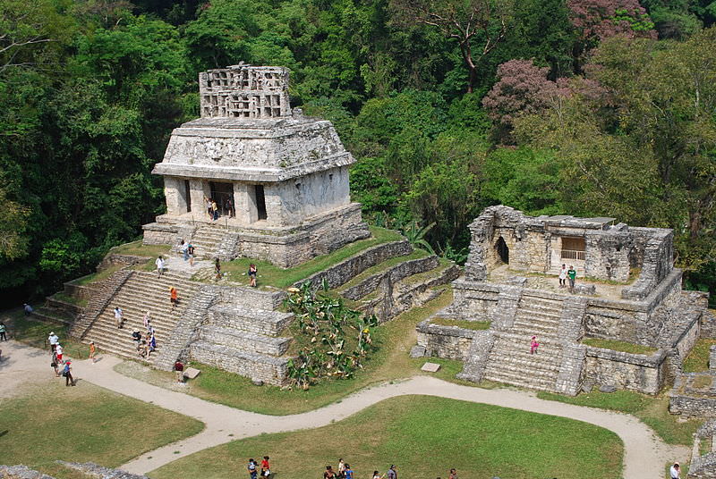The Temple of the Sun at the Maya city of Palenque, Mexico. The temple was built in the late 7th century CE as part of the complex known as the Group of the Cross by King K'an Bahlam.