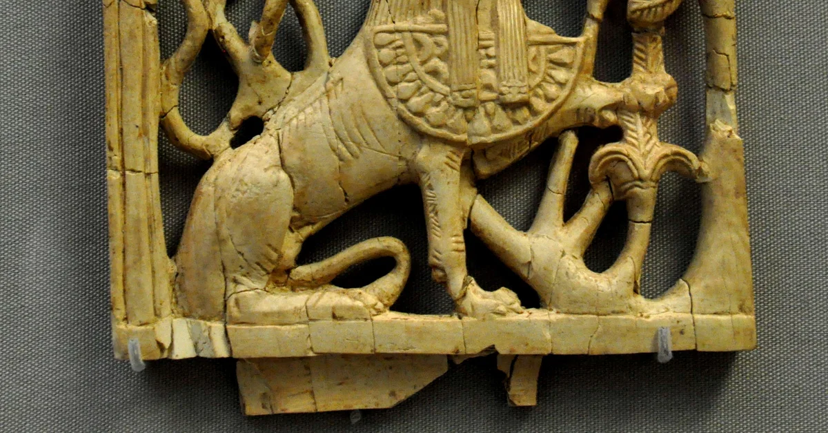 This ivory plaque is part of the so-called "Nimrud Ivories." The sphinx wears the typical Egyptian Pharaohs' double crown and an apron with cobra. This indicates that the plaque was made by a Phoenician craftsman. From Nimrud (ancient Kalhu) northern Mesopotamia, Iraq. Neo-Assyrian period, 911-612 BCE. (The British Museum, London).