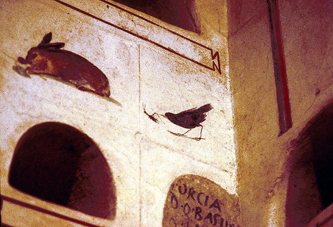 Charming frescoes decorate the walls of this first-century CE columbarium, discovered in 1982 CE on the grounds of the Villa Doria Pamphili. Other wall paintings include fishermen, scenes from tragedy, musical instruments, dancers of death, and Nile scenes.