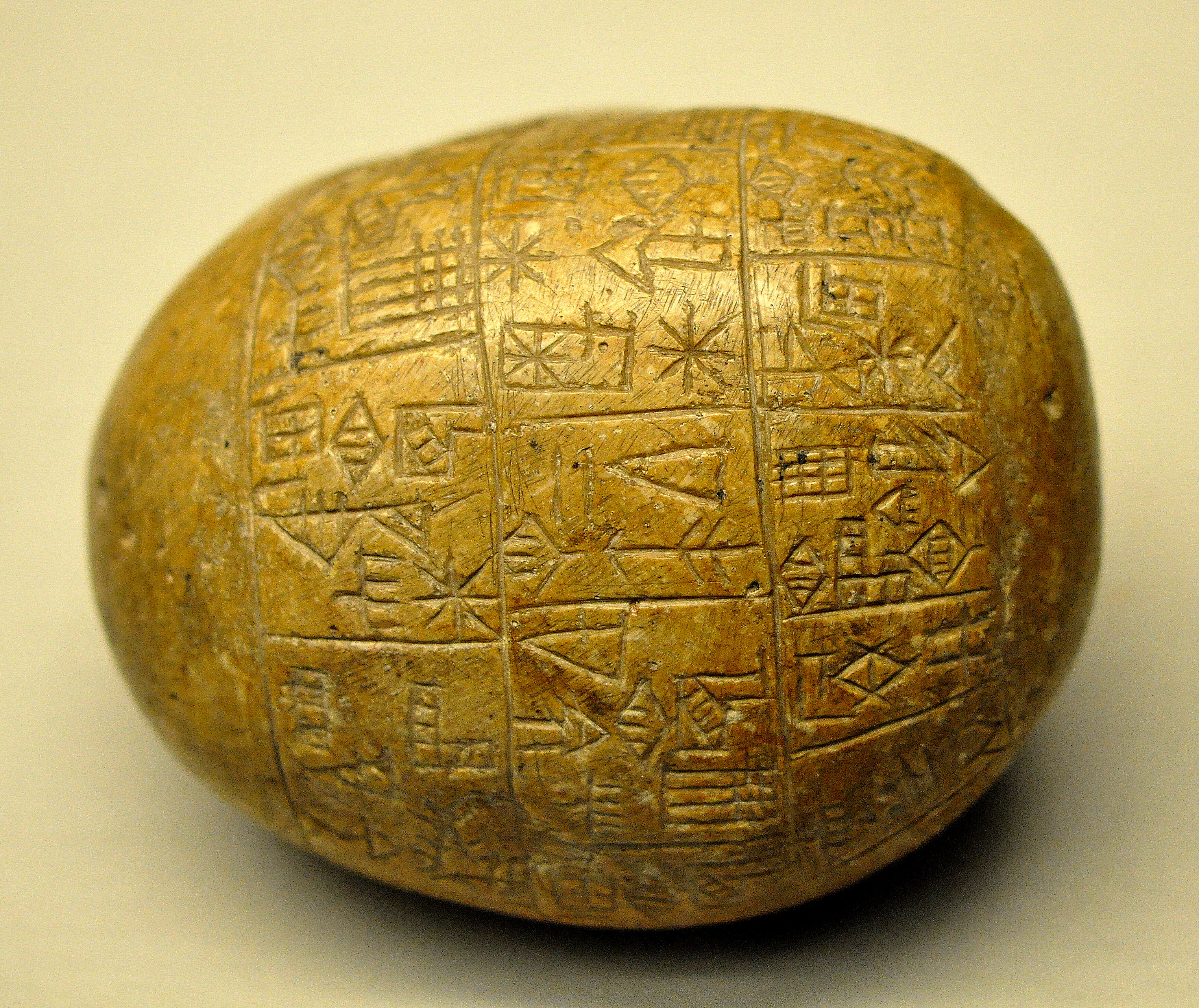 The cuneiform inscriptions mention that Enannatum, king of Lagash, reminds the gods of his prolific temple building achievements in the city of Lagash. From Girsu (modern-day Tell Telloh, Dhi-Qar Governorate, Iraq), Mesopotamia. Early dynastic period (early dynastic III), circa 2400 BCE. (The British Museum, London).