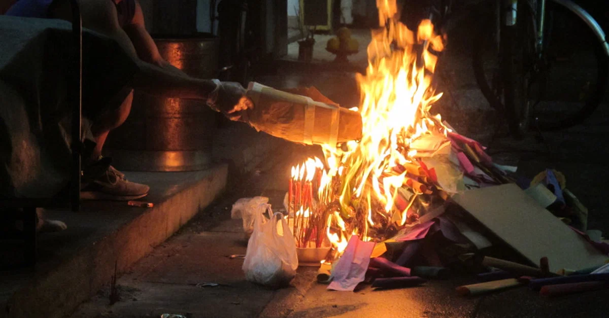 The Hungry Ghost festival continues to be celebrated in China on the fifteenth night of the seventh month, when it is thought that the dead can cross over into the land of the living because the veil that separates the two worlds is thinnest.