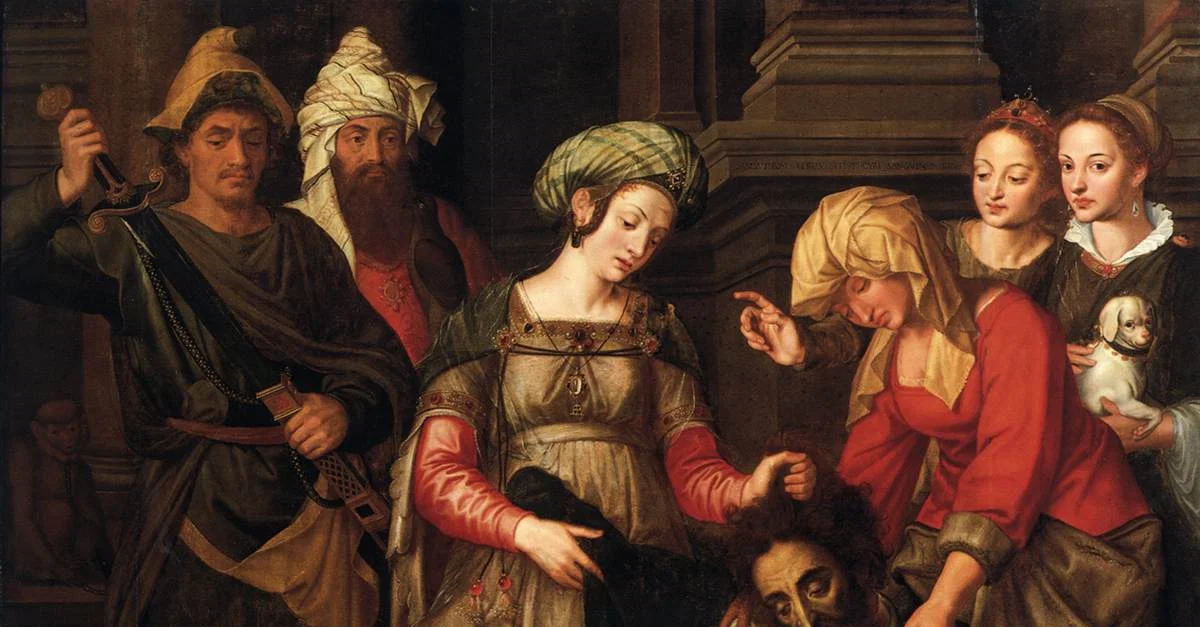 The Revenge of Tomyris by Michiel van Coxcie (c. 1620 CE). On display at Akademie der bildenden Künste, Vienna. Tomyris was queen of the Massagetae who successfully defended her people against a Persian invasion led by Cyrus the Great. According to Herodotus (1:214), Cyrus died in battle against her, and in this image she is depicted holding his severed head.