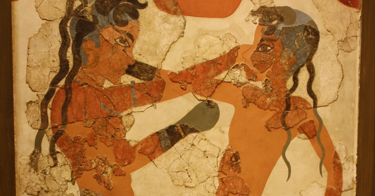 The Boxers Fresco from Bronze Age Akrotiri on the island of Thera (Santorini), c. 1700 BCE. (National Archaeological Museum, Athens)