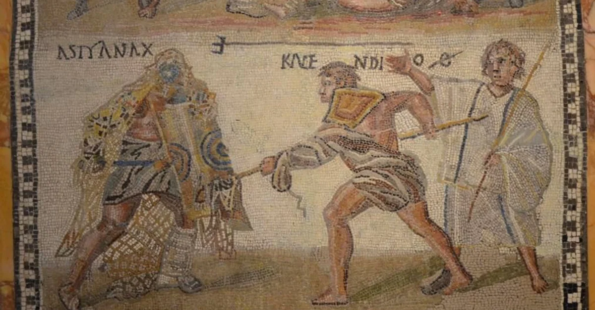Raddato, C. (2014, November 26). Retiarius Gladiator Mosaic. World History Encyclopedia. https://www.worldhistory.org/image/3273/retiarius-gladiator-mosaic/