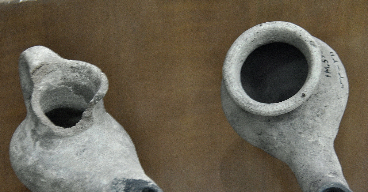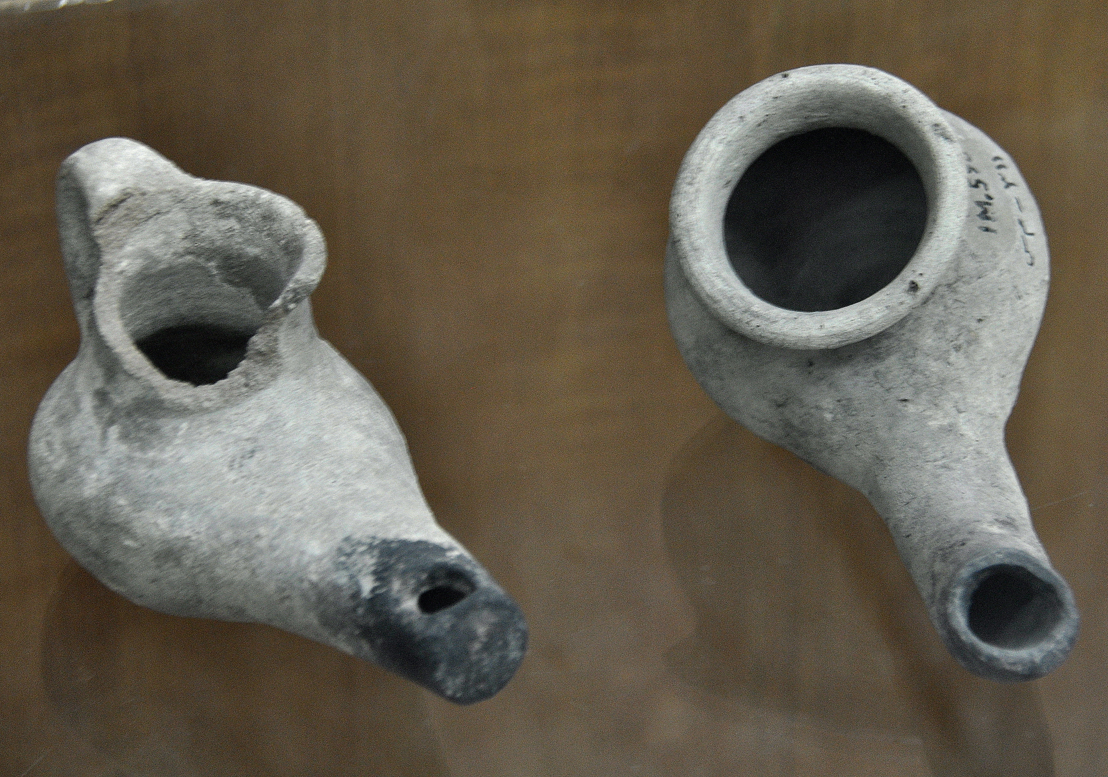 These two pottery lamps date back to the Neo-Assyrian period, 911-612 BCE. From Mesopotamia, modern-day Iraq. The Sulaimaniya Museum, Iraq.