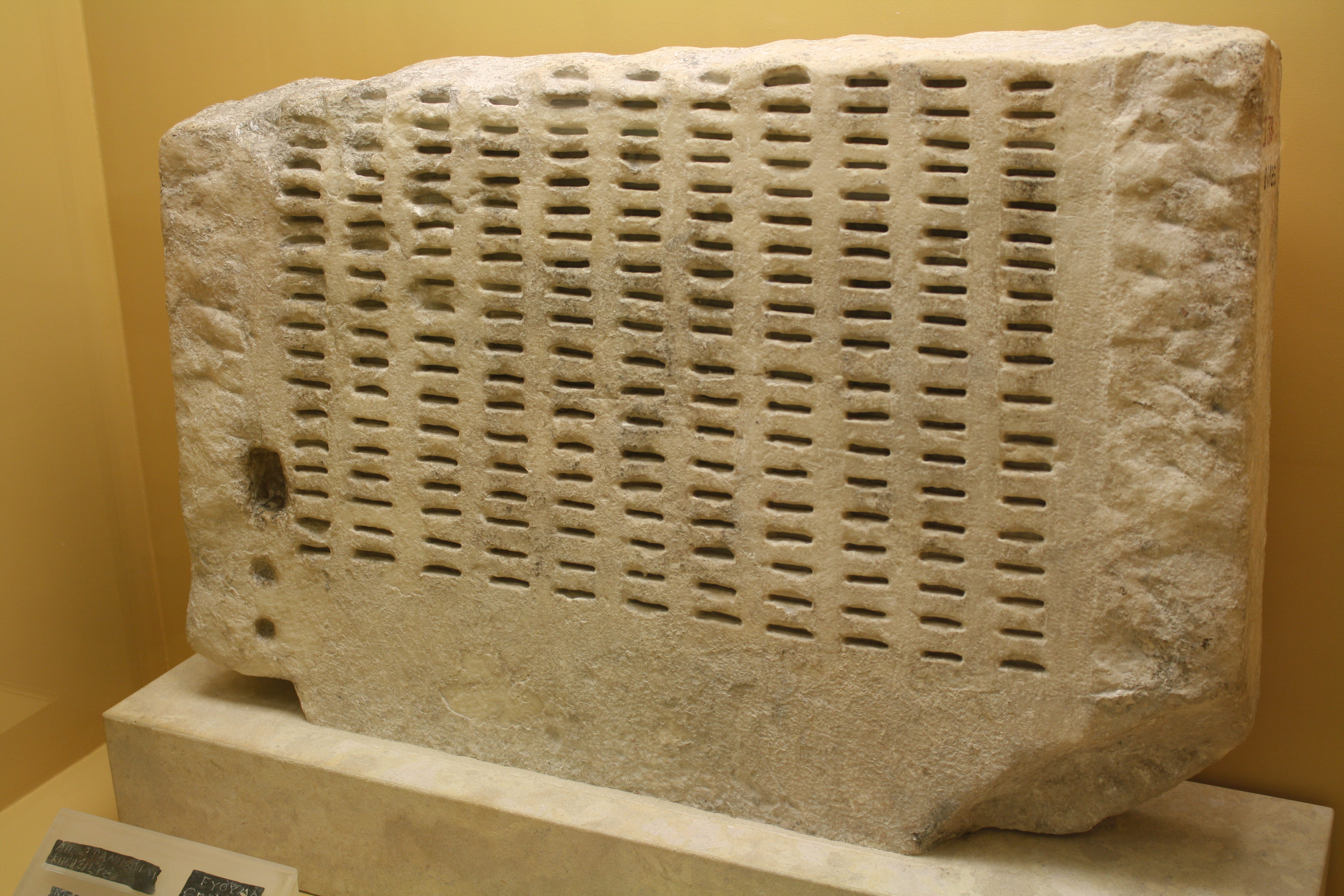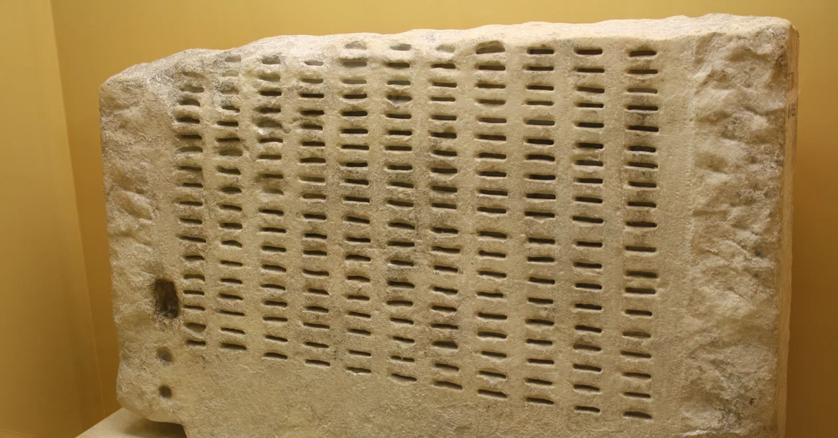 Stone kleroteria; a device that randomly dispensed black or white tokens which the Athenians used to select citizens for jury service. (Agora Museum of Athens)