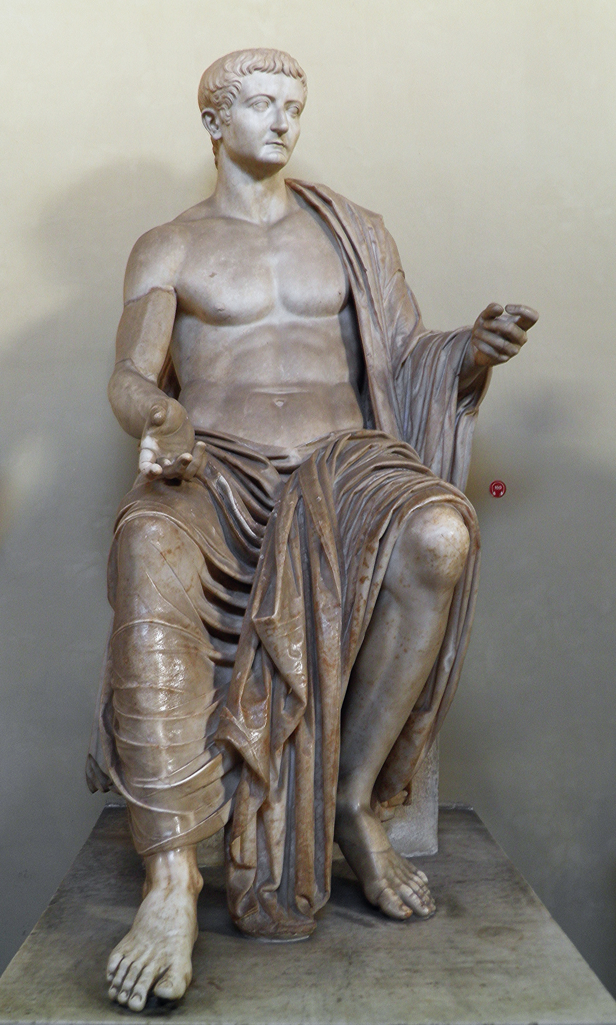 Seated statue of Tiberius, 41-54 CE, from Privernum. (Chiaramonti Museum, Vatican Museums) The sculpture dates after 37 CE, the year in which the emperor died, and together with other imperial portraits, was part of an iconic cycle set up in a public building of the Roman colony of Privernum.