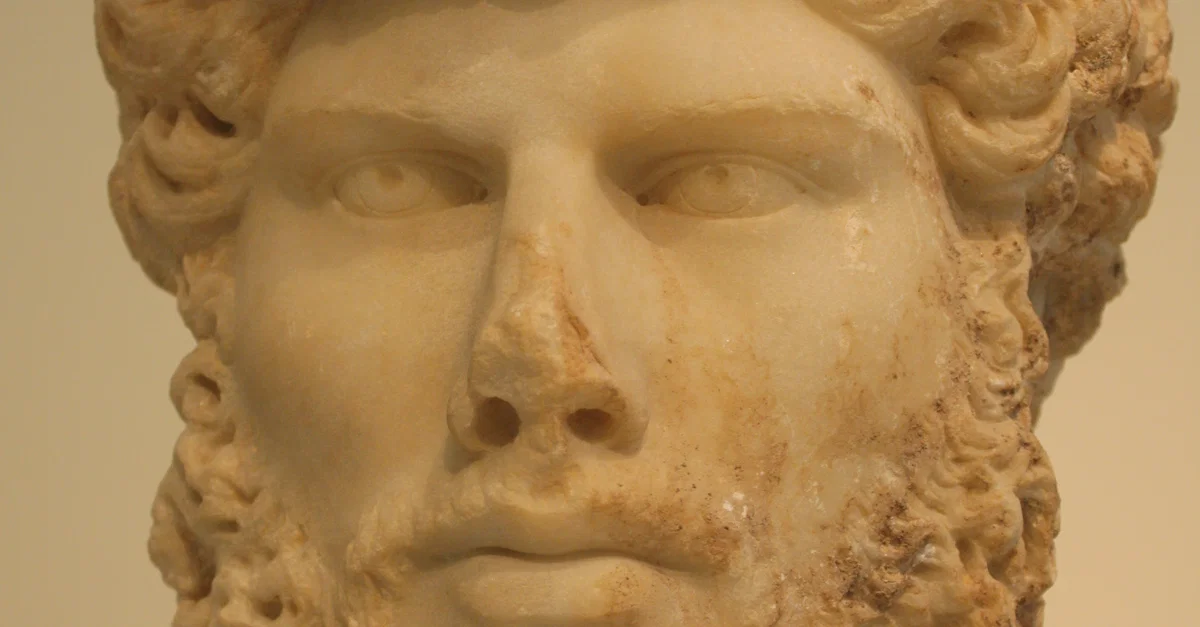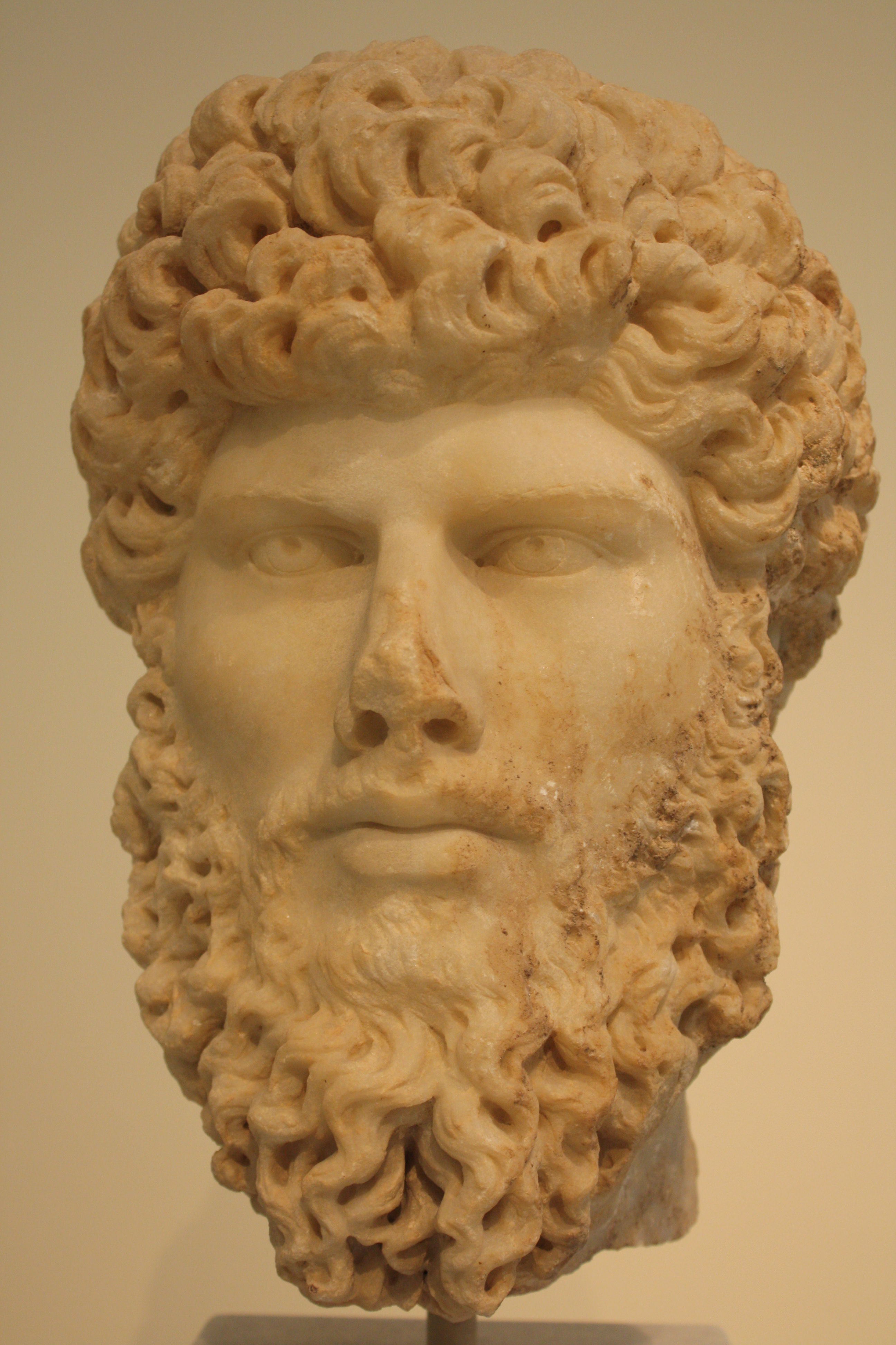 A marble portrait bust of Roman emperor Lucius Verus, reign 161-169 CE. Found in Athens. (National Archaeological Museum, Athens)