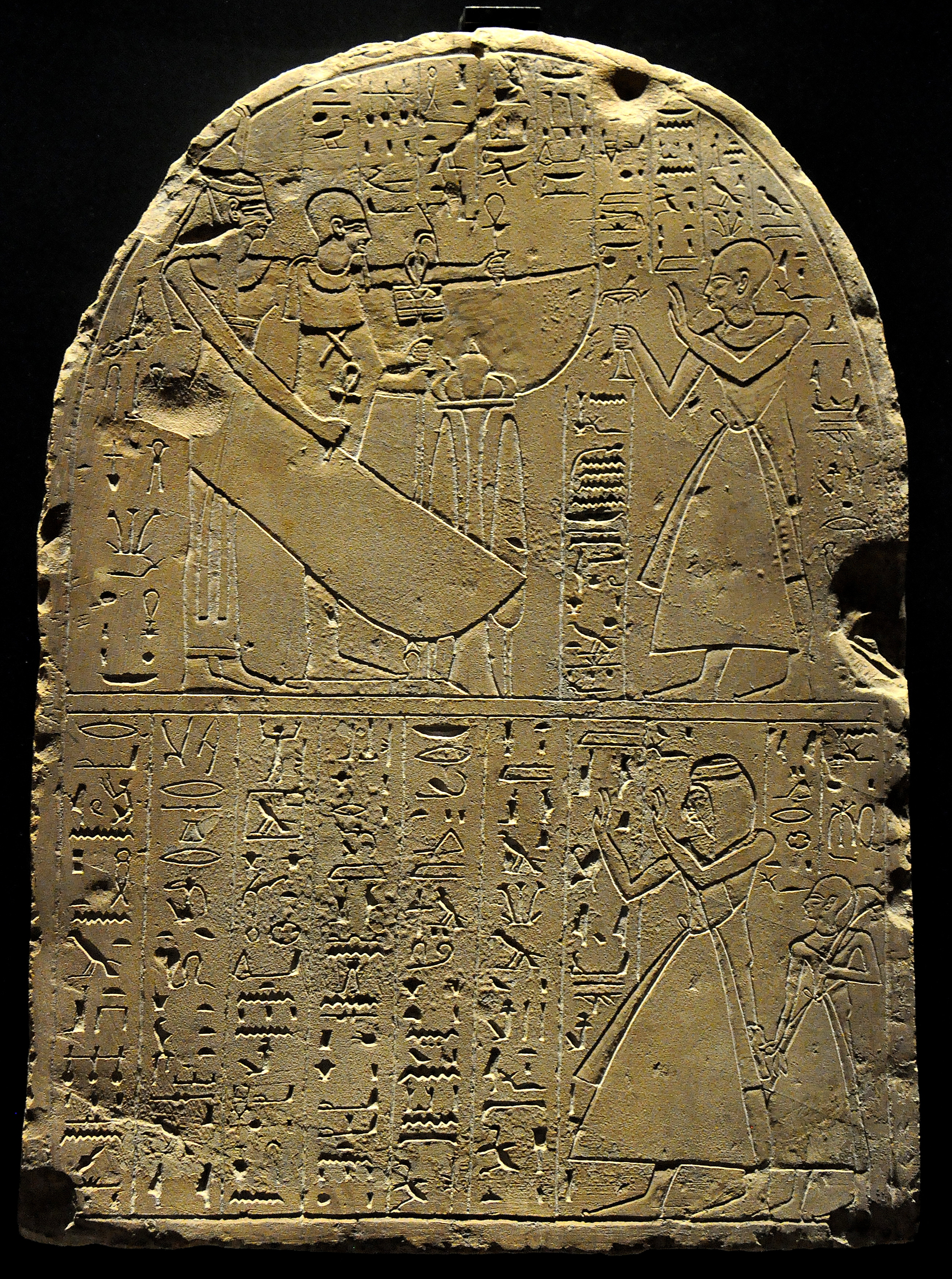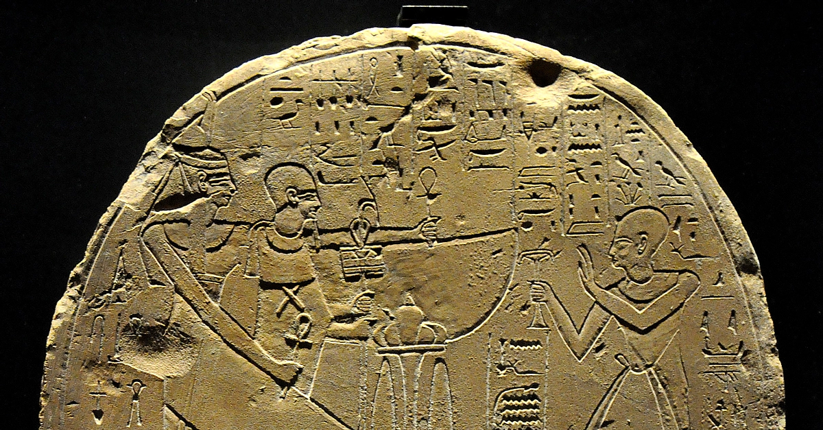 Limestone stela of the head sculptor Kaha. From Deir El-Madinah, Western Thebes, modern-day Egypt. New Kingdom, 20th Dynasty, circa 1150 BCE. (State Museum of Egyptian Art, Munich, Germany).