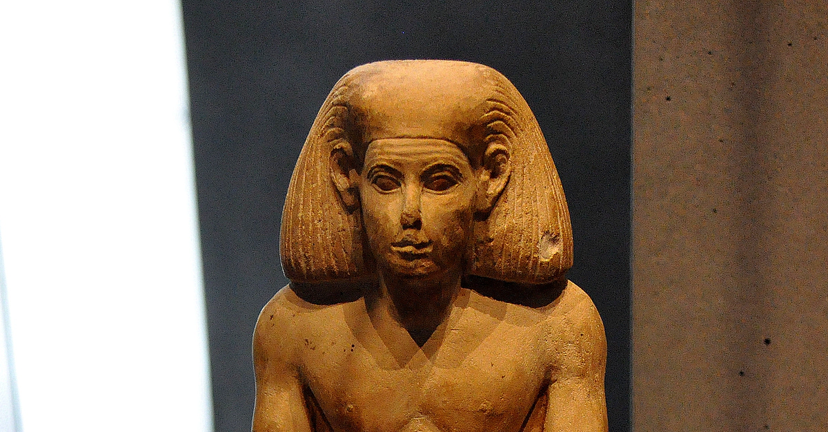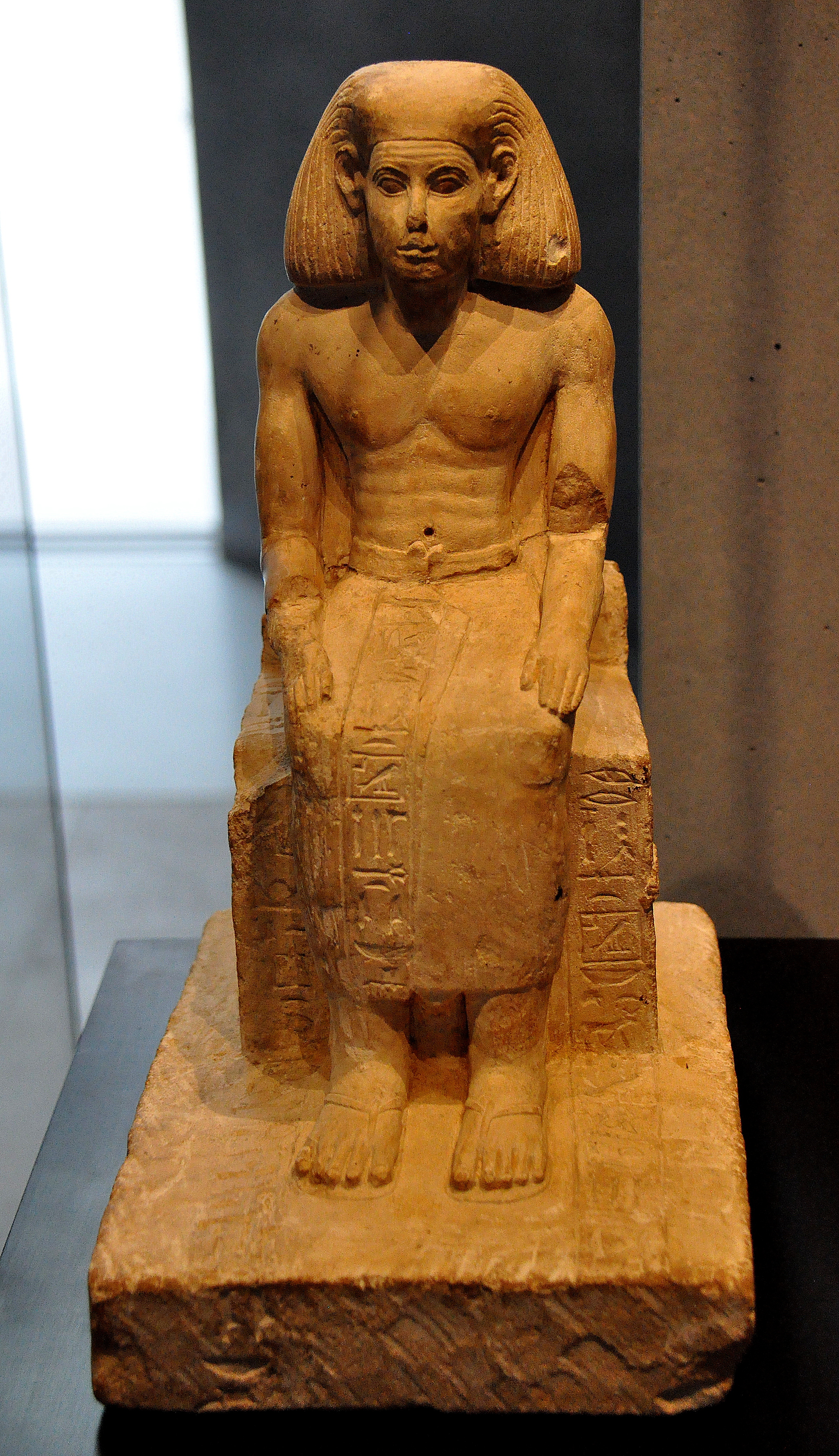Limestone statue of a seated figure of Khety. Probably from Atfih (ancient Aphroditopolis), modern-day Egypt. Middle Kingdom, 11th to 14th Dynasties, 2040-1640 BCE. (State Museum of Egyptian Art, Munich, Germany).