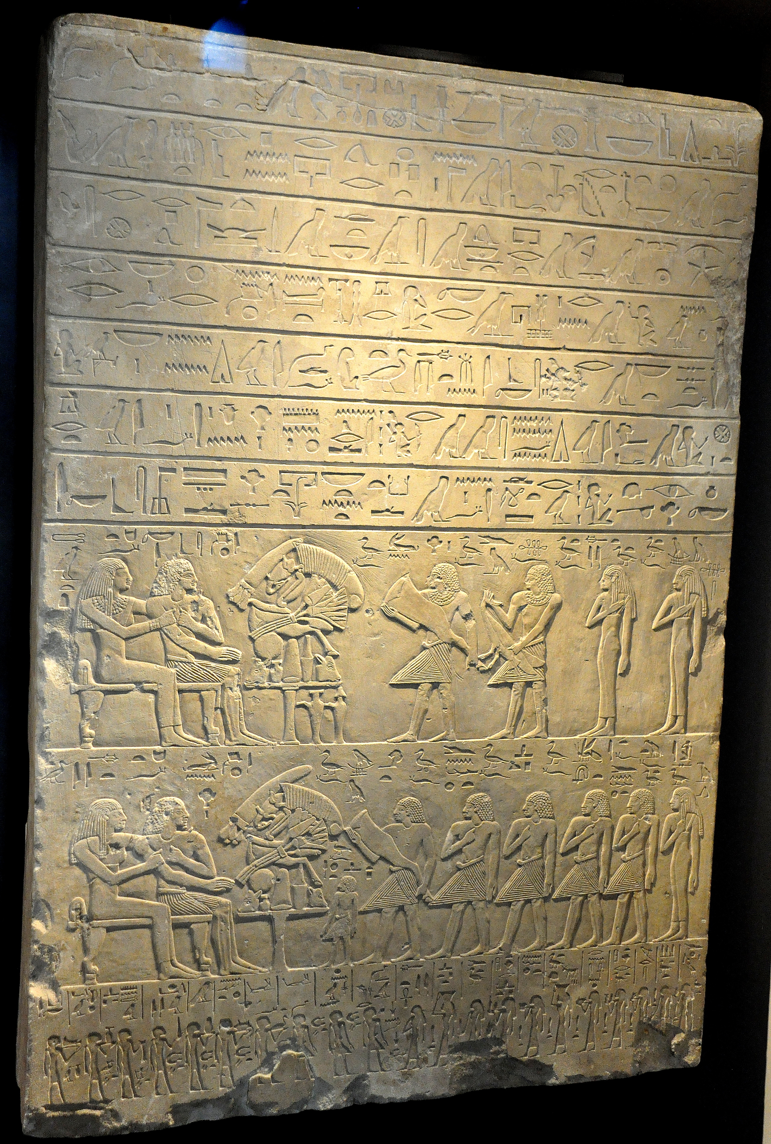 Limestone stela of the Egyptian nomarch Sobeki. From Abydos, modern-day Egypt. Middle Kingdom, 12th Dynasty, circa 1900 BCE. (State Museum of Egyptian Art, Munich, Germany).