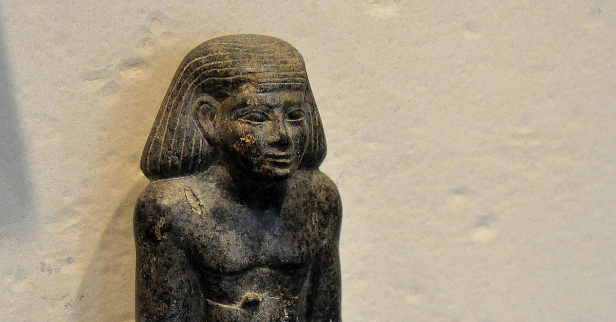 Syenite statue of the seated figure of Sobekhotep and his wife. From Faiyum, modern-day Egypt. Middle Kingdom, 12th Dynasty, 1800 BCE. (State Museum of Egyptian Art, Munich, Germany).