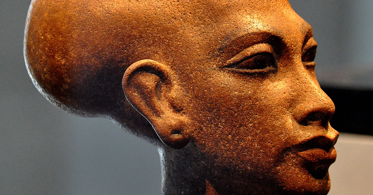 Quartzite head of a statue which depicts the daughter of the Egyptian pharaoh Akhenaten. From modern-day Egypt. New Kingdom, 18th Dynasty, 1345 BCE. (State Museum of Egyptian Art, Munich, Germany).