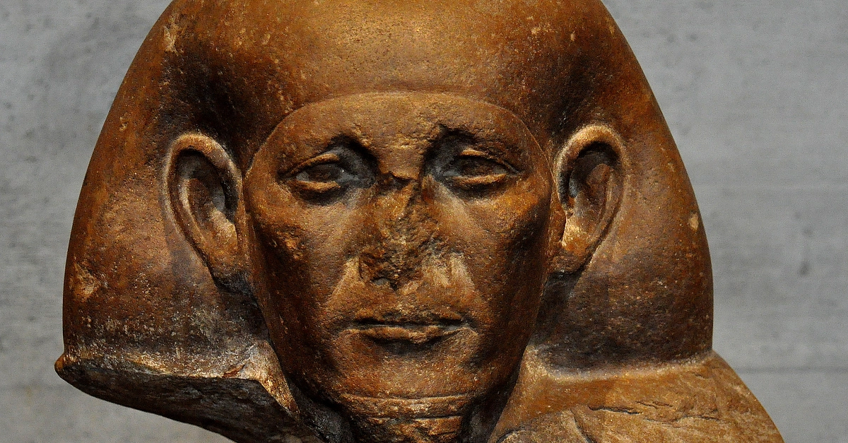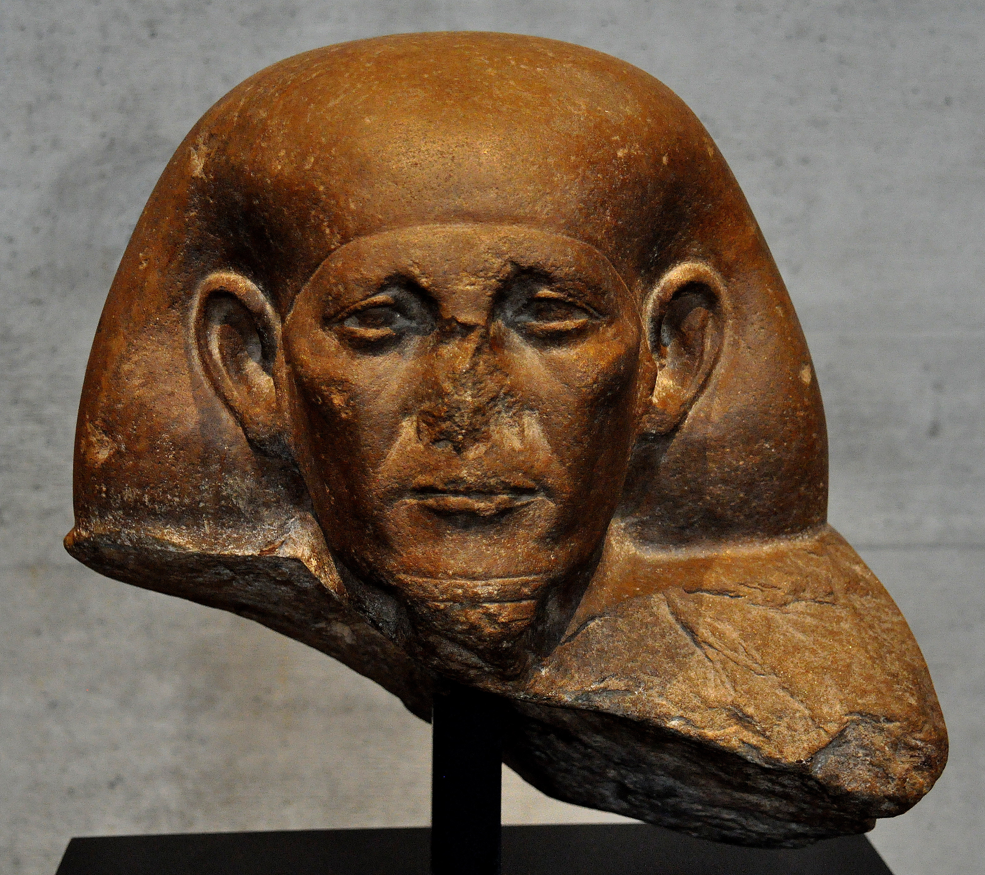 Quartzite head of the Theban official Mentuemhat. From modern-day Egypt. Saite period, 26th Dynasty, circa 650 BCE. (State Museum of Egyptian Art, Munich, Germany).