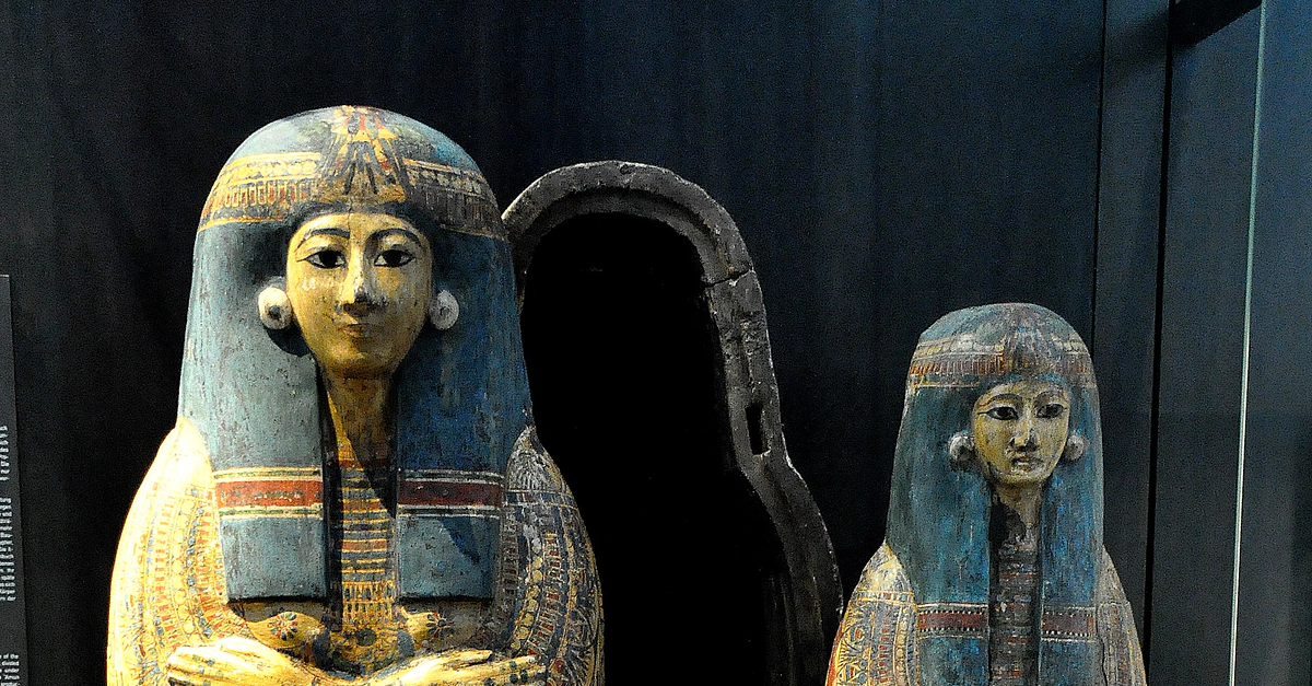 Two sycamore wood coffins of Herit-ubekhet, a temple musician at Karnak. From Deir El-Bahari, Western Thebes, modern-day Egypt. 3rd intermediate period, 21st Dynasty, circa 1000 BCE. (State Museum of Egyptian Art, Munich, Germany).