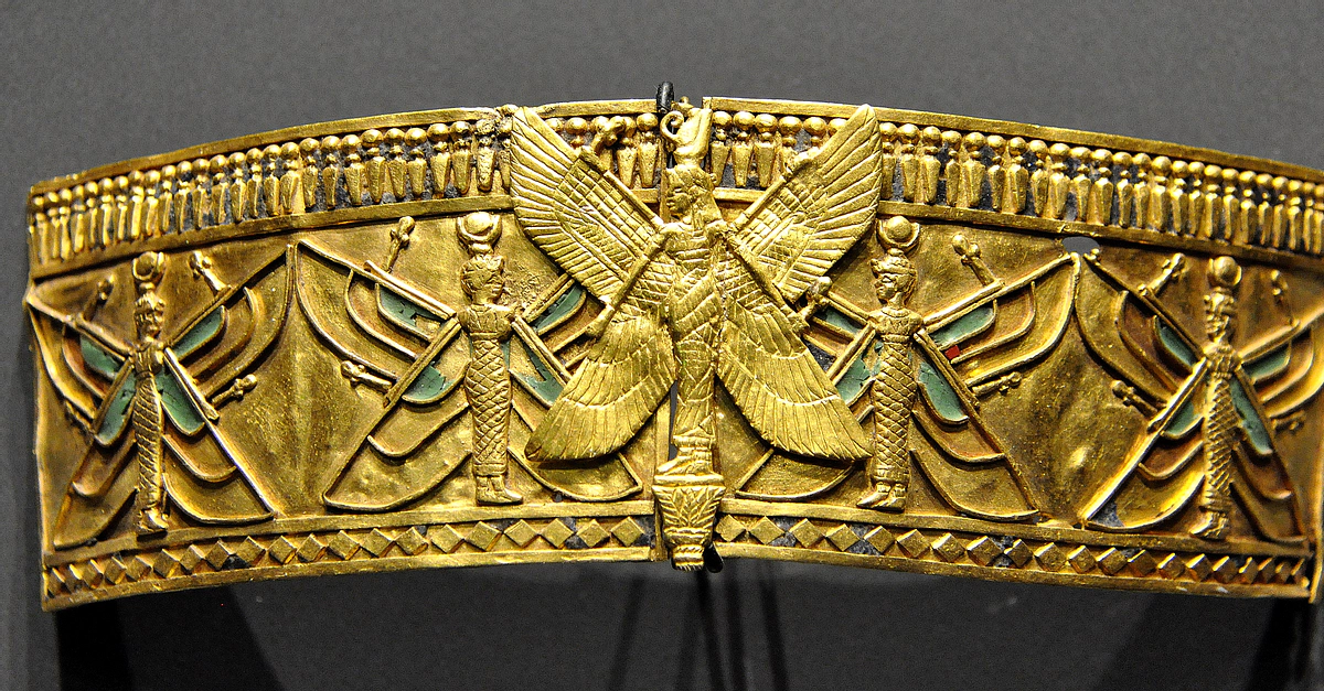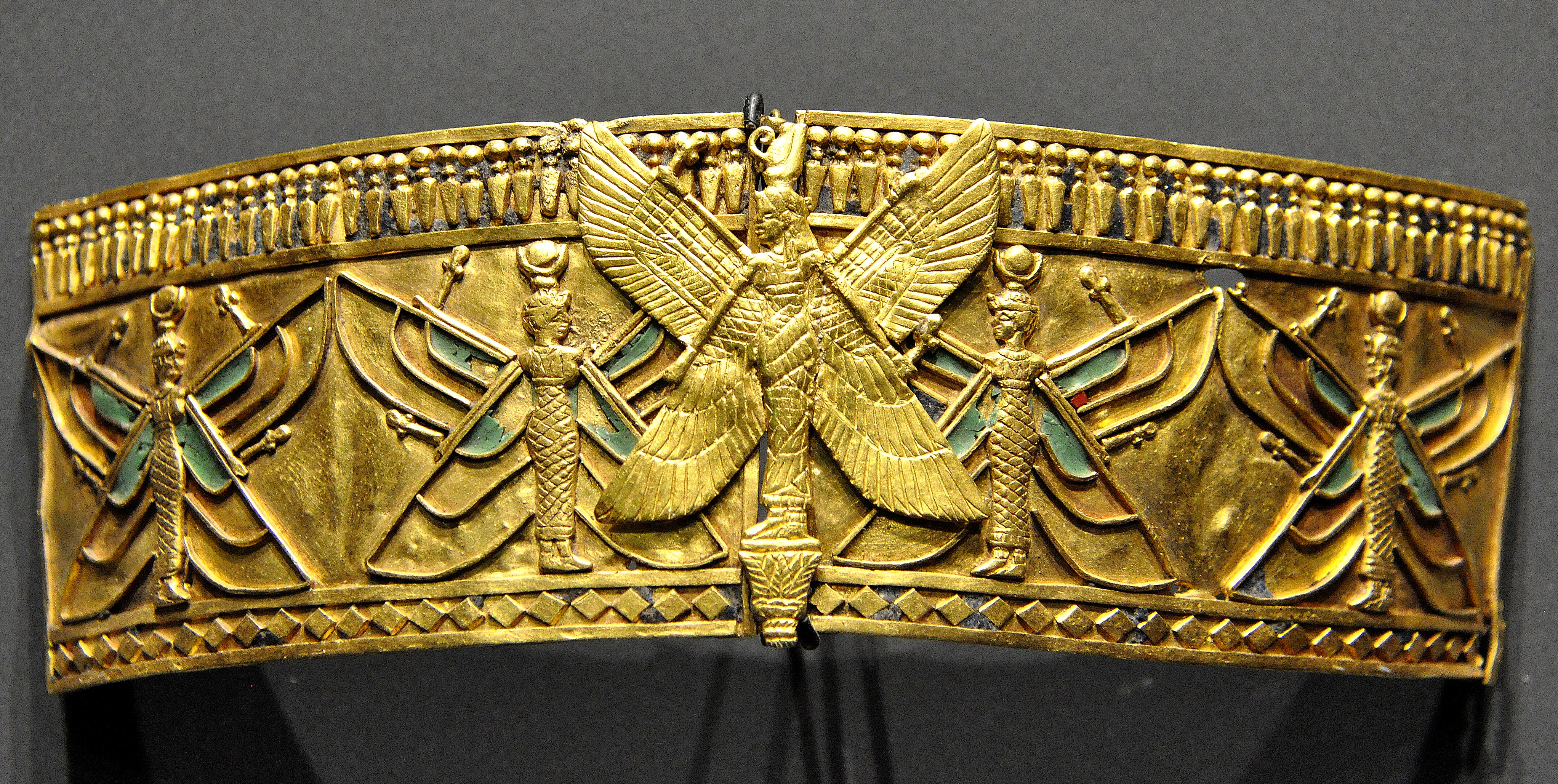 Gold armlet with a figure of a winged goddess. From the treasure of the Nubian queen Amanishakheto, pyramid N6, Meroe, modern-day northern Sudan. Meroitic period, around 1 CE. (State Museum of Egyptian Art, Munich, Germany).