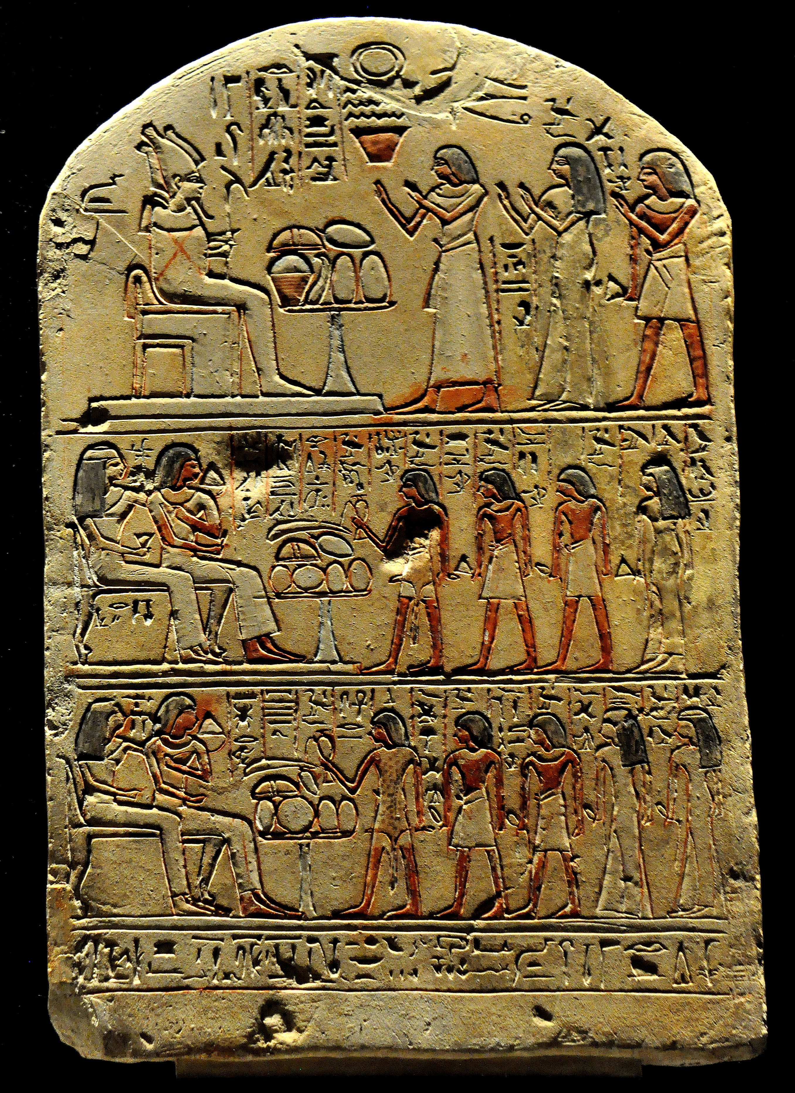 Limestone stela of Khai, the follower of the king. From modern-day Egypt. New Kingdom, 18th Dynasty, circa 1400 BCE. (State Museum of Egyptian Art, Munich, Germany).